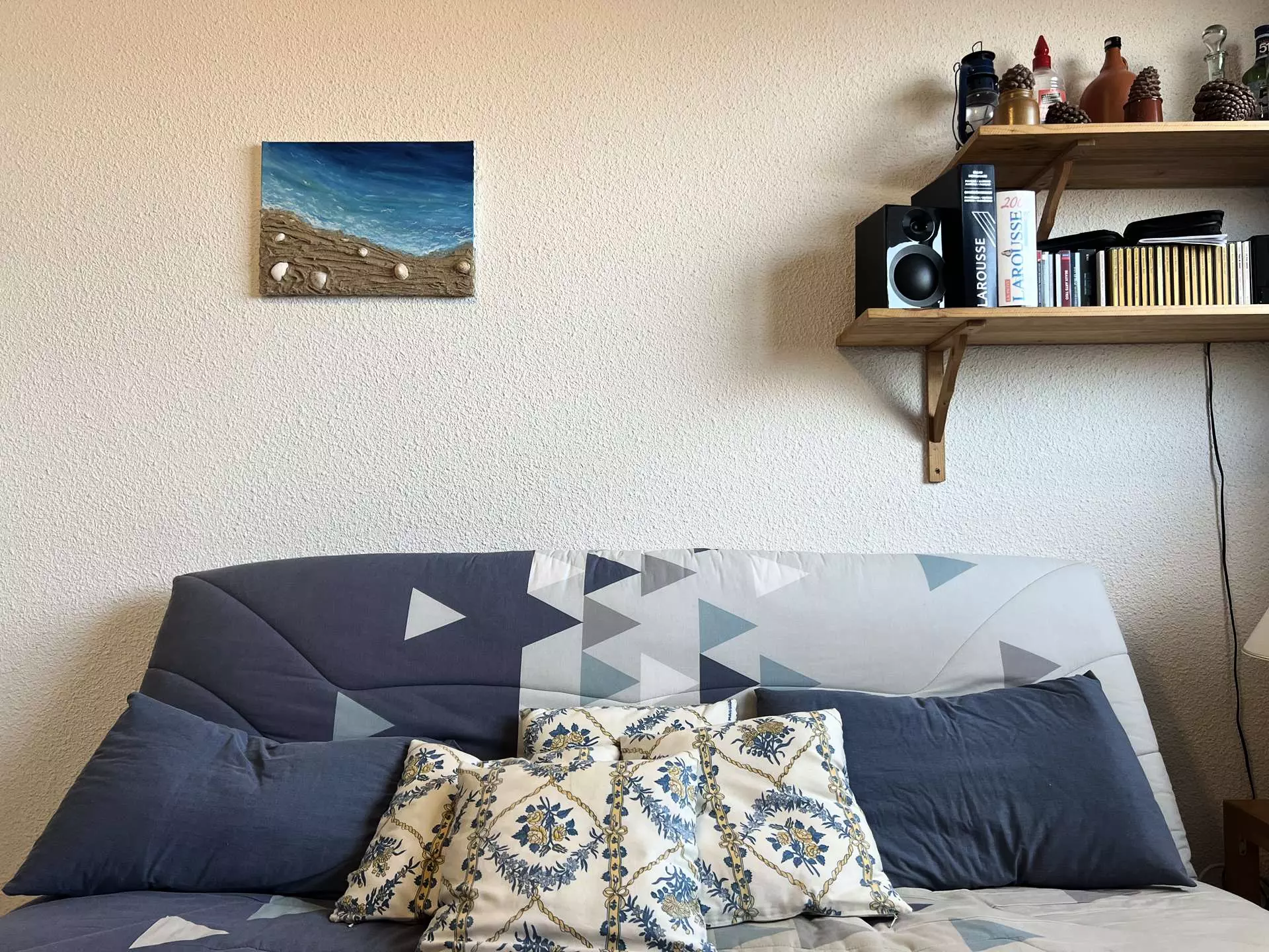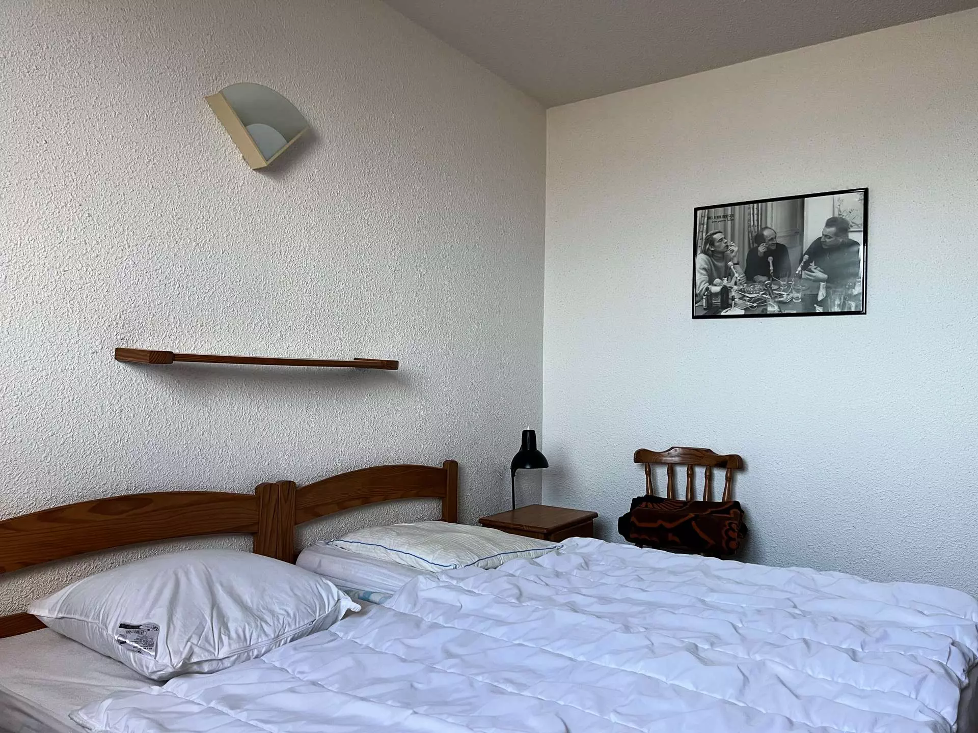 - Un lit double avec couette et oreillers (dimension standard : 140x190cm) ;