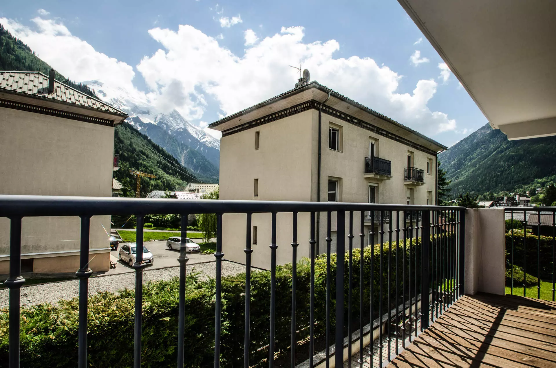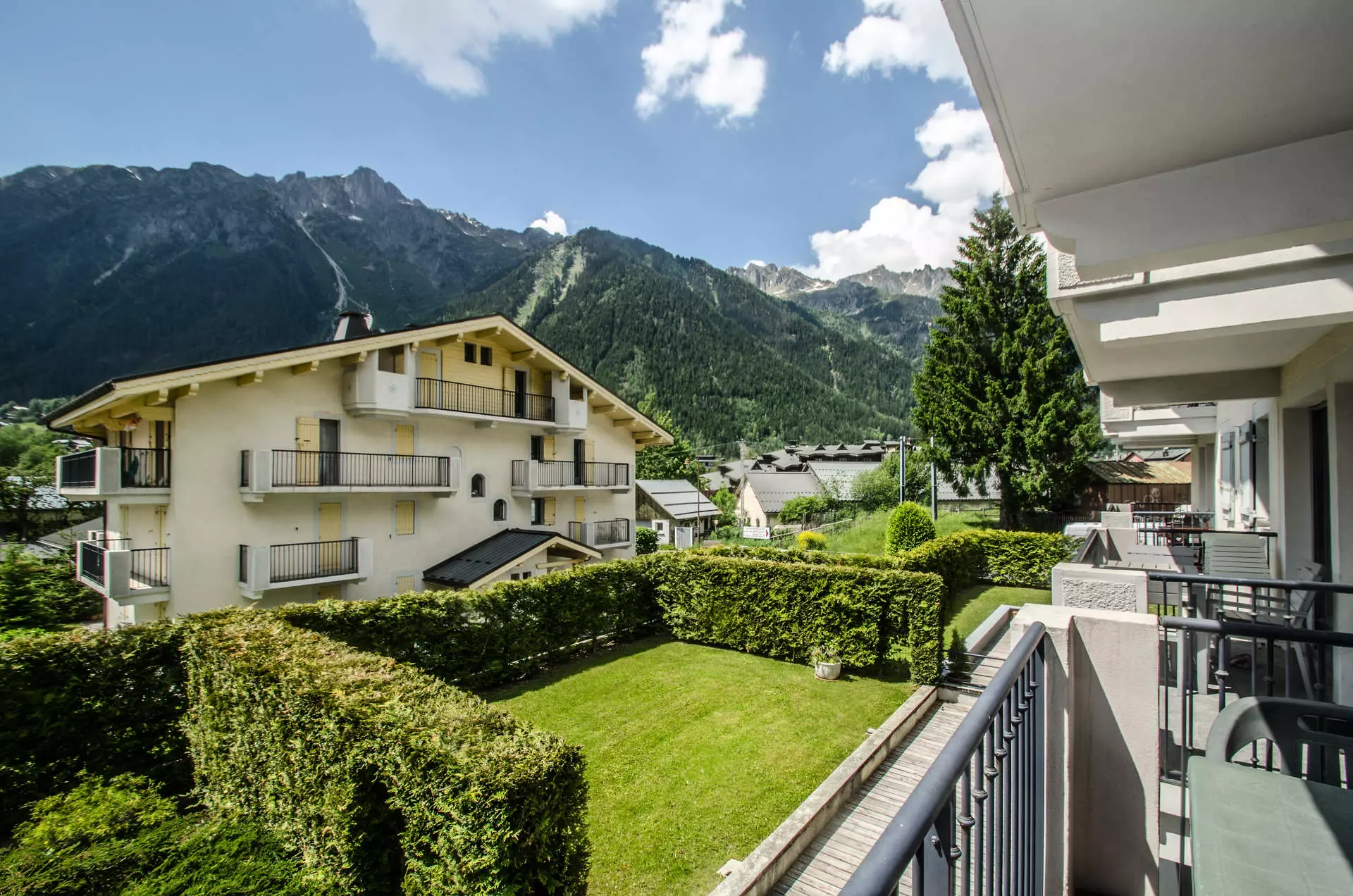 - Balcon équipé d'un salon de jardin, vue sur le Brévent