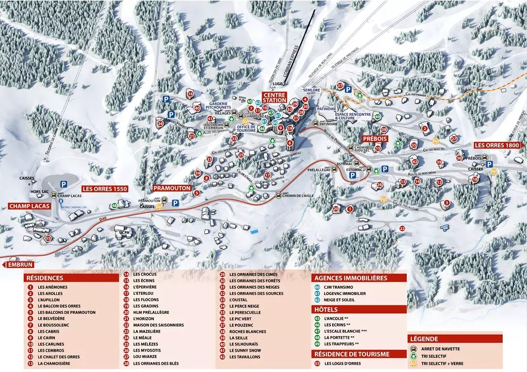 Située dans les Hautes-Alpes, aux portes du Parc National des Écrins, la station des Orres vous invite dans un cadre naturel exceptionnel surplombant le Lac de Serre-Ponçon dont l'ensoleillement généreux ravit chaque année de nombreux vacanciers.