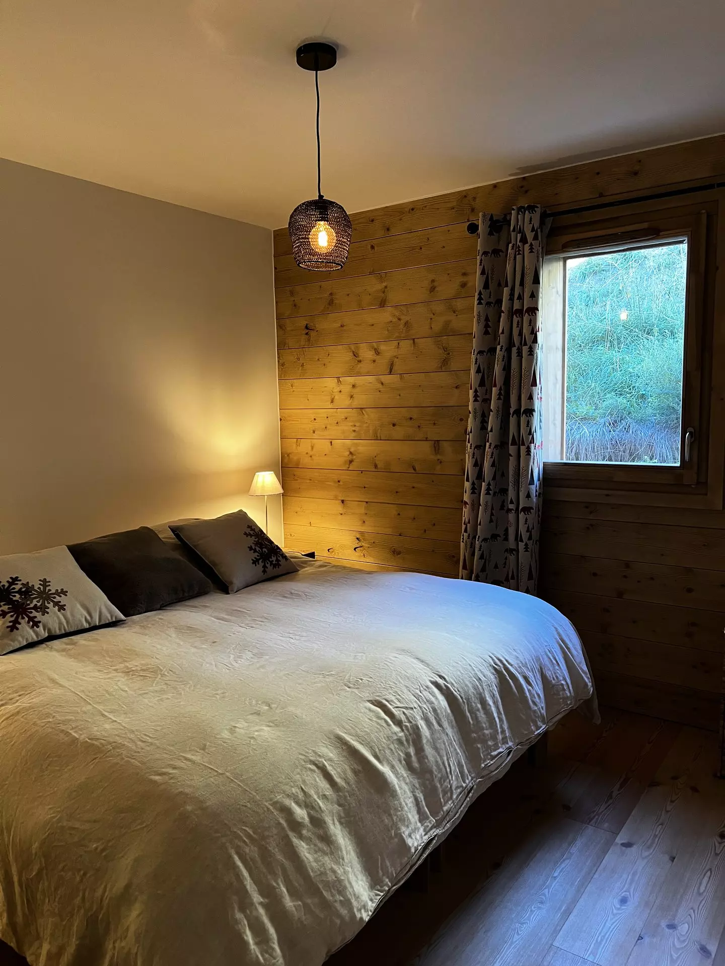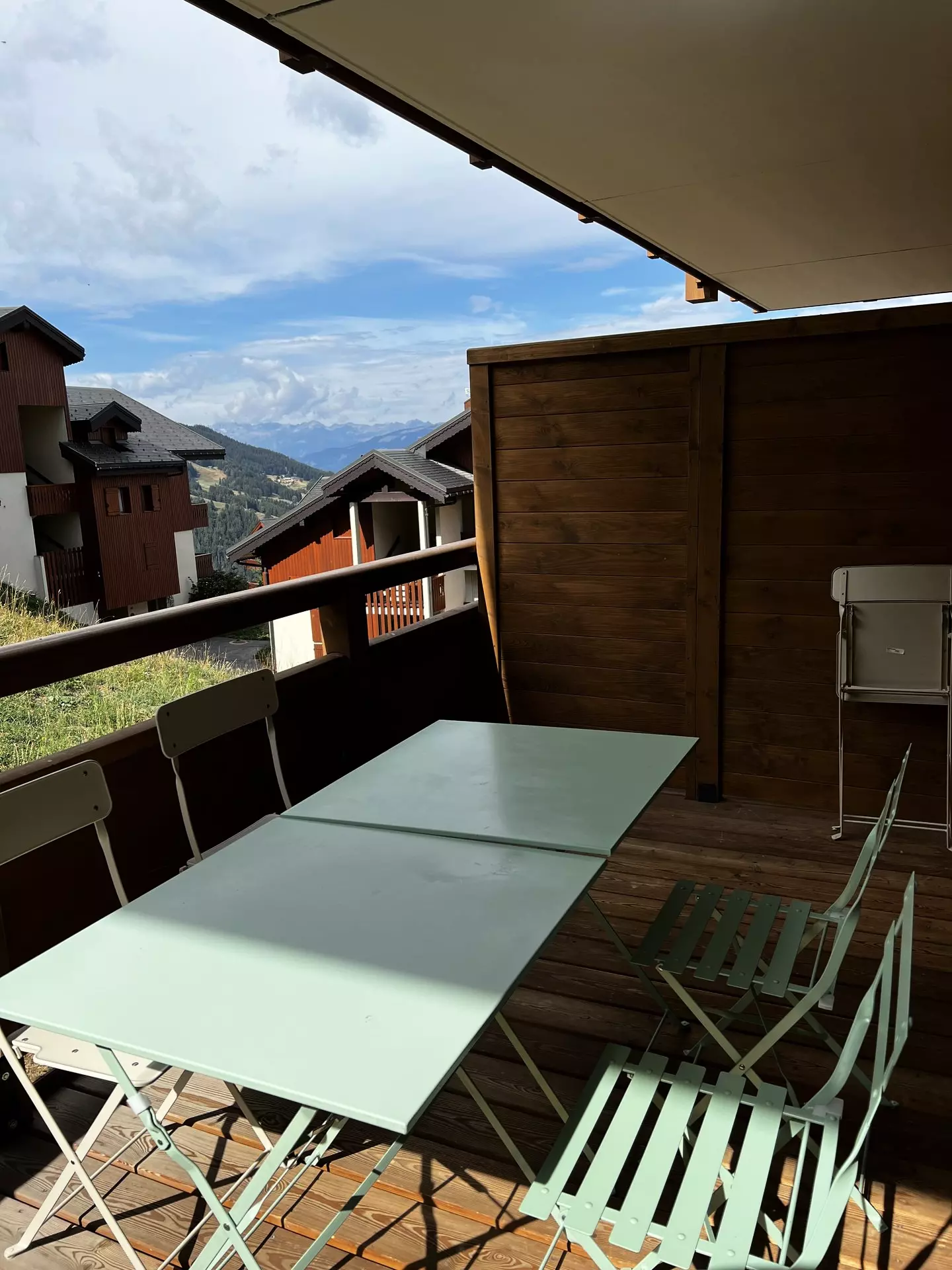 Cet appartement haut de gamme est loué pour 6/7 personnes. Il est composé d'une chambre avec lit double et salle de douche avec WC et d'une 2 ème chambre avec 2 lits superposés et 1 lit simple , une salle de bains, 1 WC indépendant et une cuisine équipée ouverte sur le séjour avec un canapé convertible donnant sur une grande terrasse orienté Ouest avec une très belle vue sur nos montagnes et vallée.