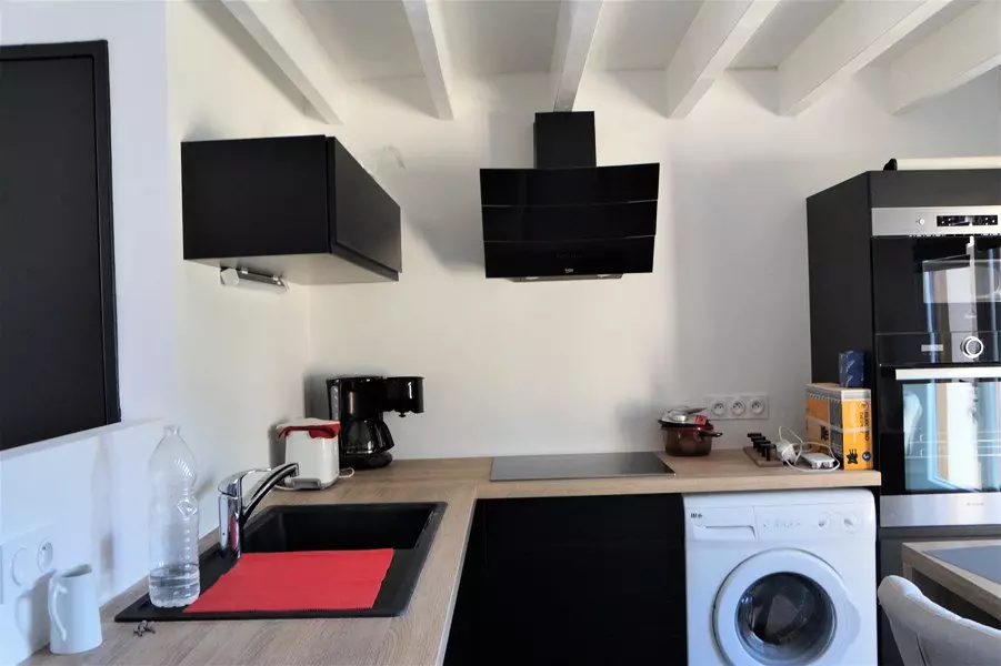 - un séjour avec cuisine ouverte aménagée et équipée, donnant sur la terrasse du jardin