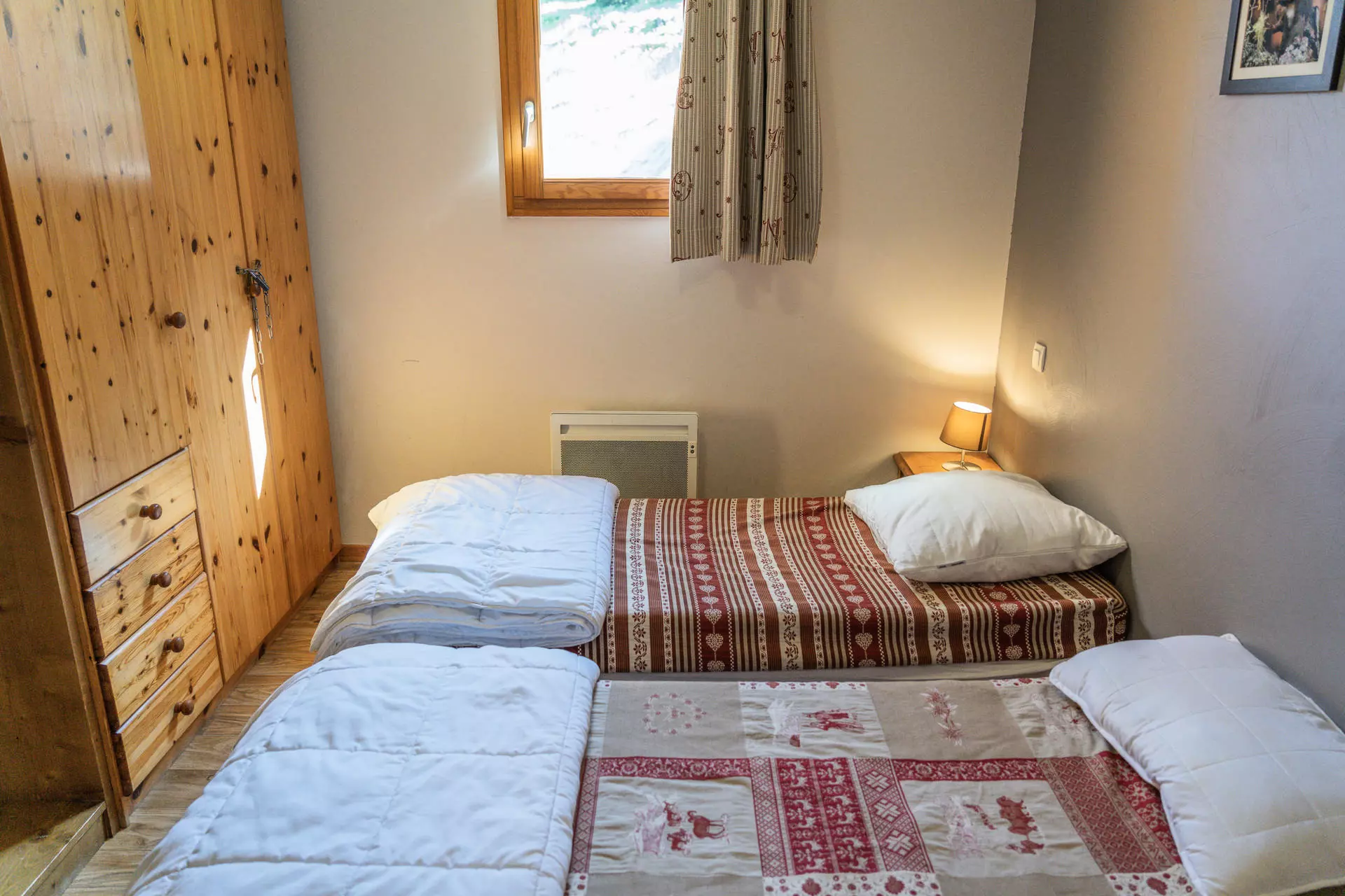 Côté couchage, chacun pourra choisir son espace. Le logement comprend une première chambre avec un lit double en 140*190cm et une deuxième avec deux lits simples en 80*190cm.