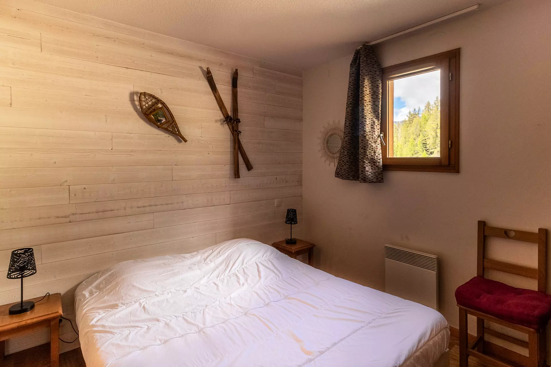 Côté couchage, vous disposerez d'une chambre avec un lit double 140x190 et d'une deuxième chambre avec deux lits simples 80x190 que vous pourrez rapprocher pour créer un lit double et un canapé lit gigogne deux personnes dans le salon.