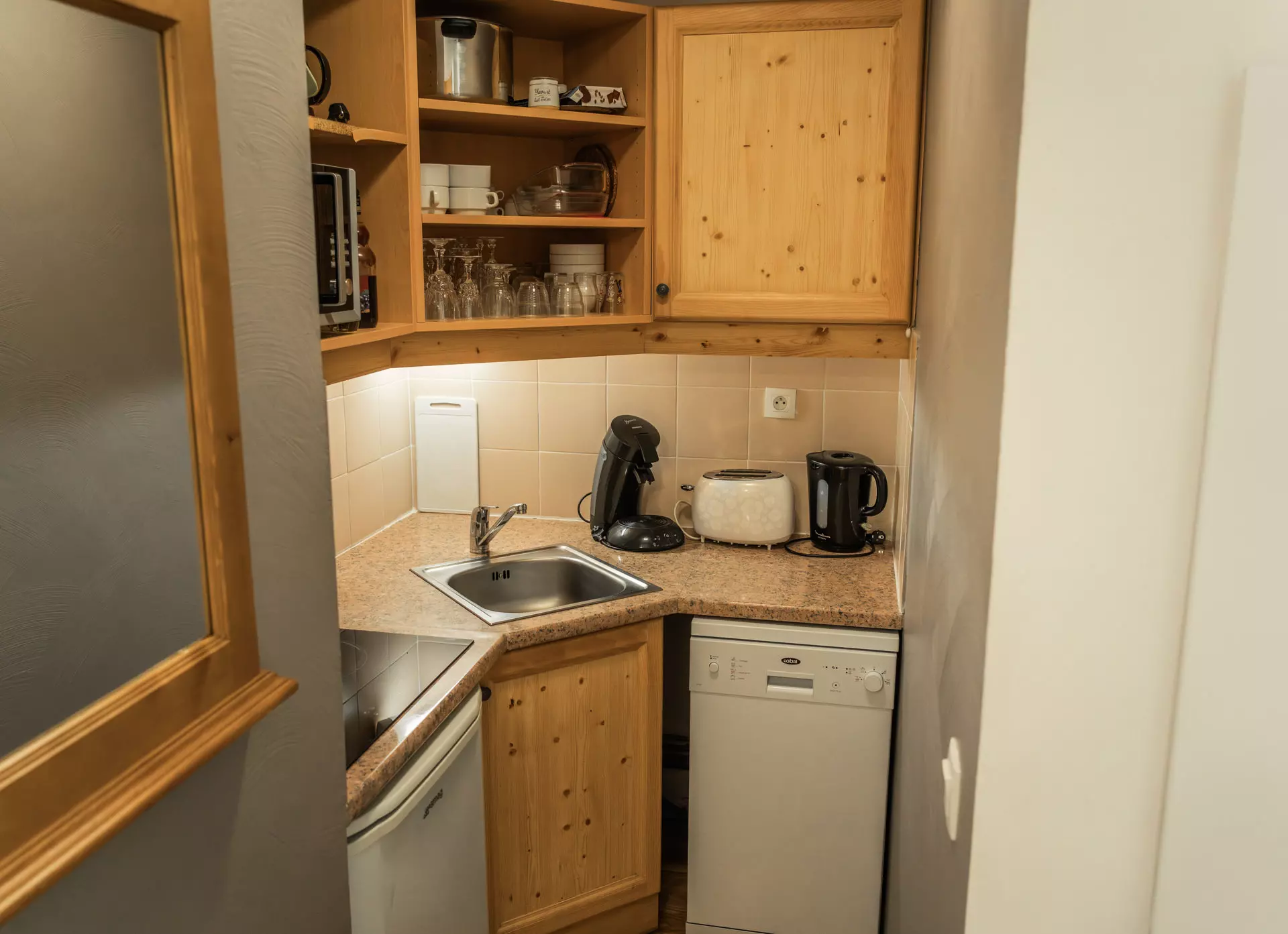 Le coin cuisine tout équipé comprendra tout ce qu'il vous faut pour concocter de bons petits plats, tel qu'un appareil à raclette et à fondue, un grille-pain, une bouilloire et un lave-vaisselle pour votre confort.