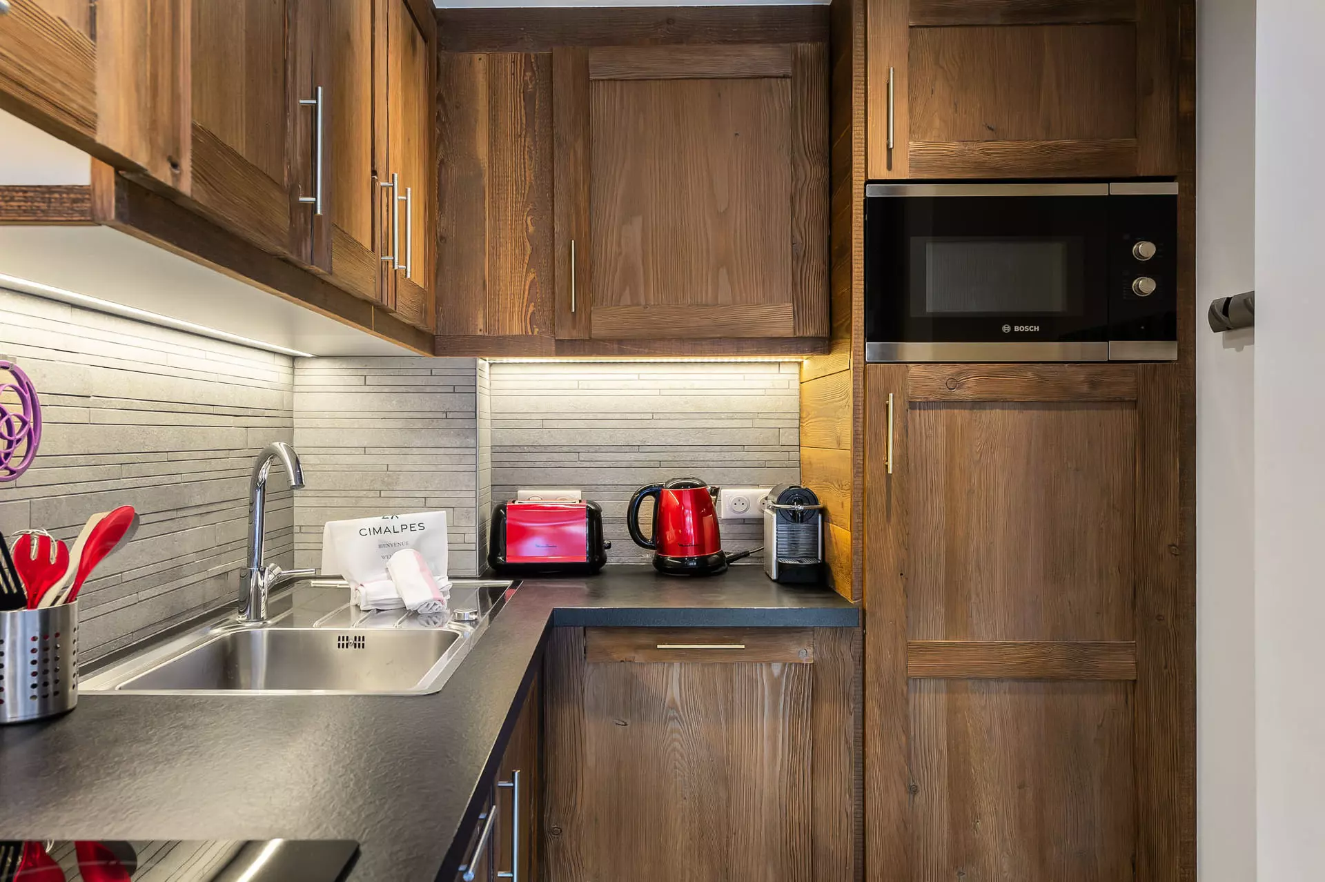 - Cuisine ouverte équipée : réfrigérateur, four, micro-onde, lave-vaisselle, plaque induction, bouilloire, grille-pain, Nespresso, mixeur, robot, appareil à raclette