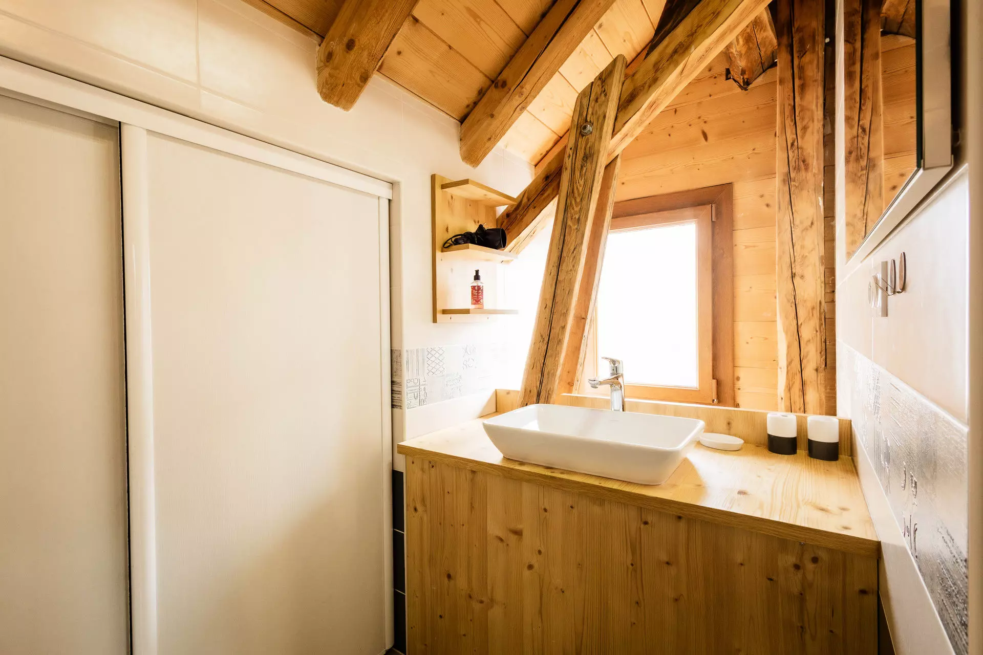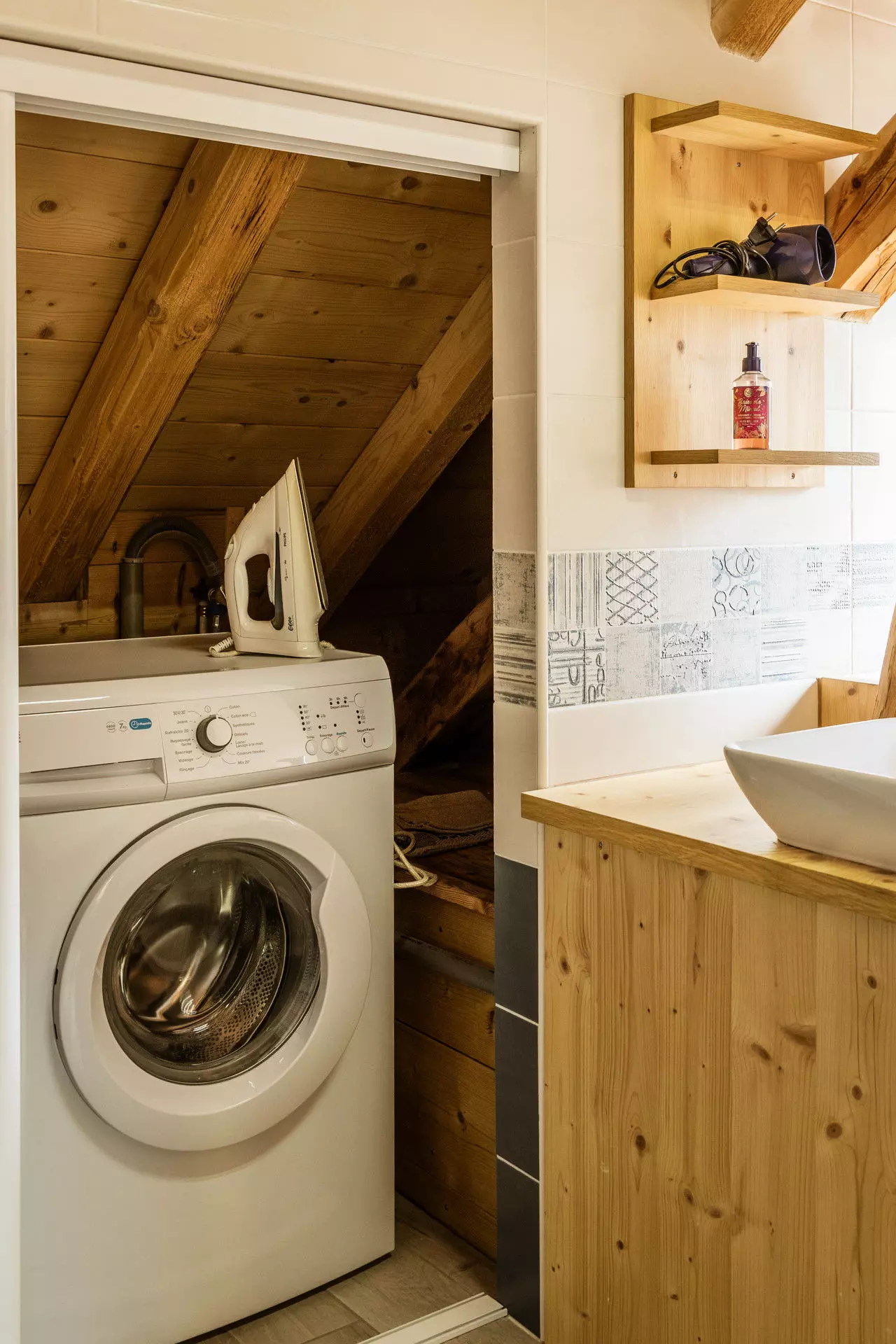 Salle d'eau : lavabo, douche, sèche-cheveux et lave-linge. WC indépendant.
