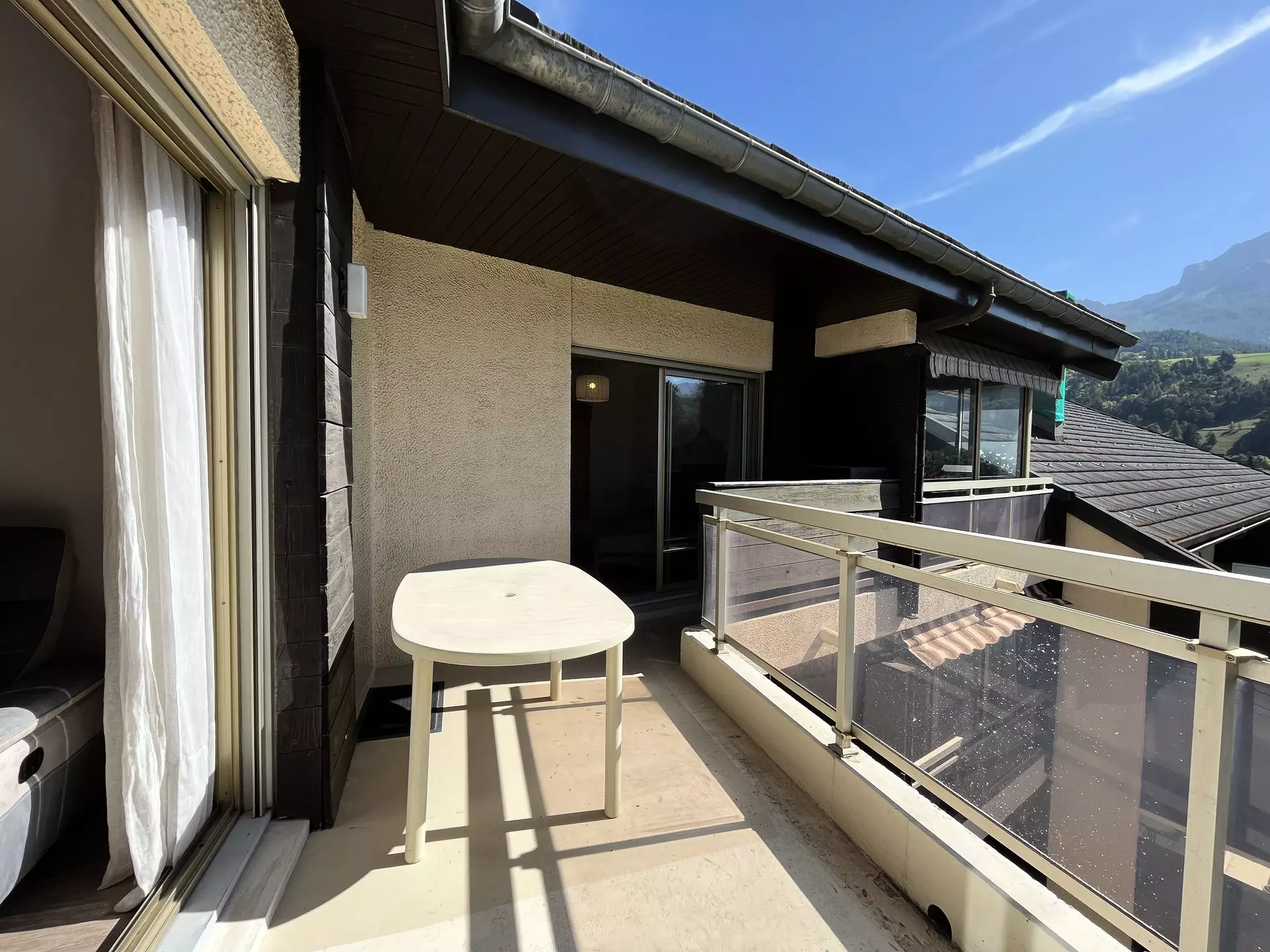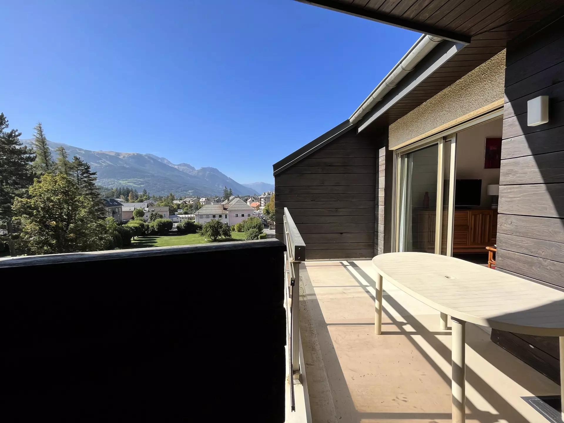Dans le village de Barcelonnette, en plein centre ville dans une belle résidence avec un parc arboré et très calme,