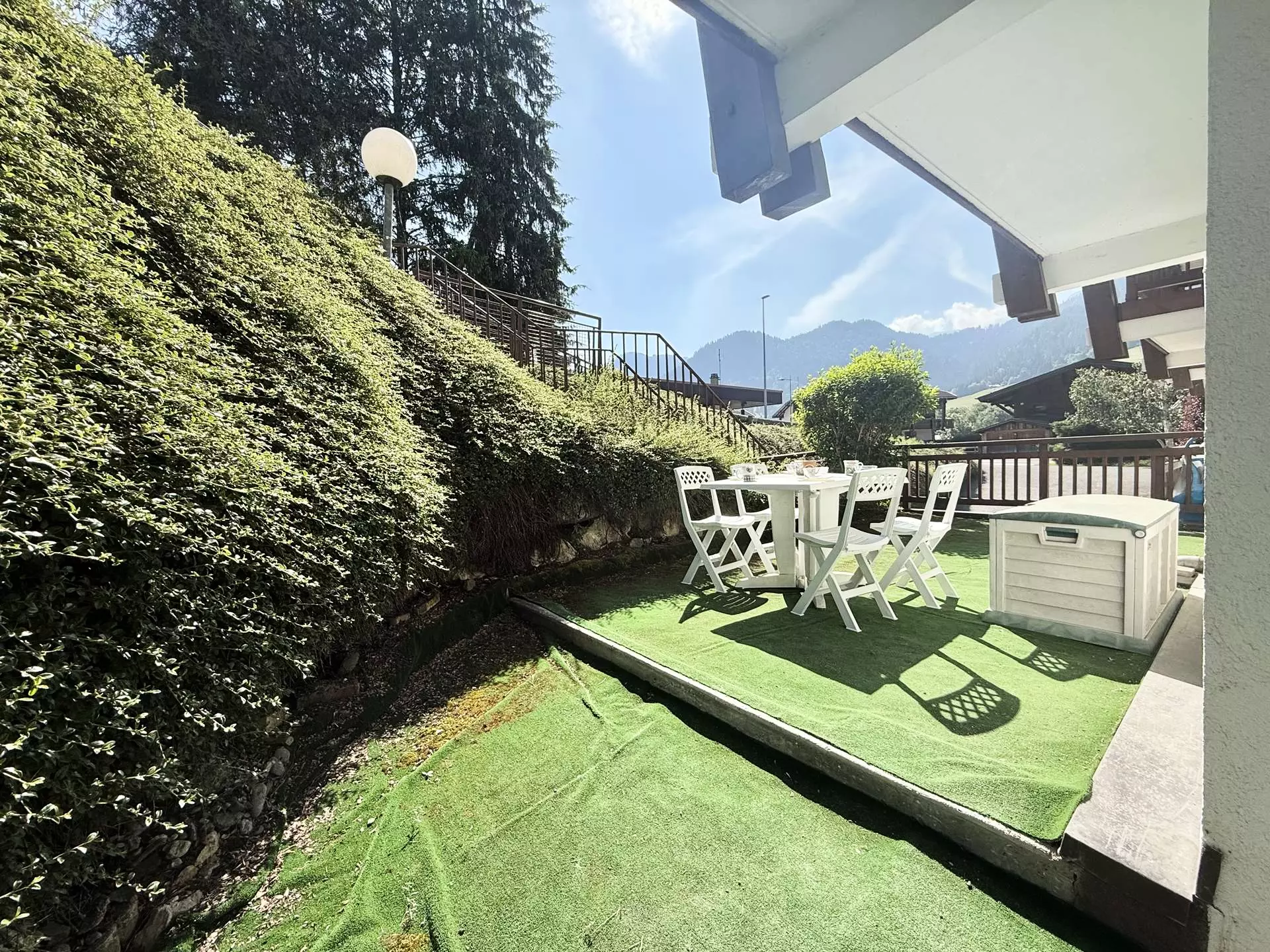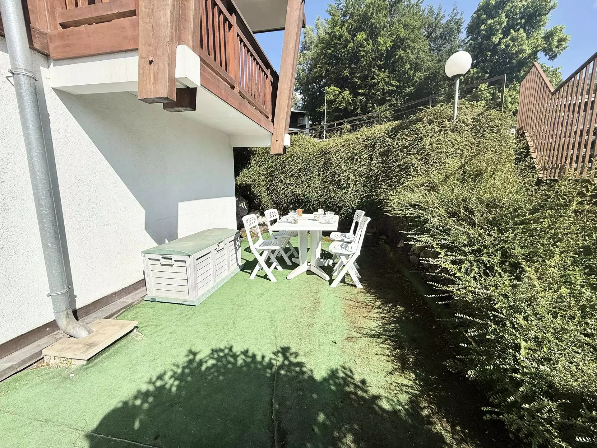 Vous bénéficierez d'une place de parking extérieure nominative ainsi que d'un casier à ski privatisé. vous disposerez d'une grande terrasse en angle exposée Nord/Nord-Est vous permettant de profiter des moments conviviaux en famille ou entre amis.