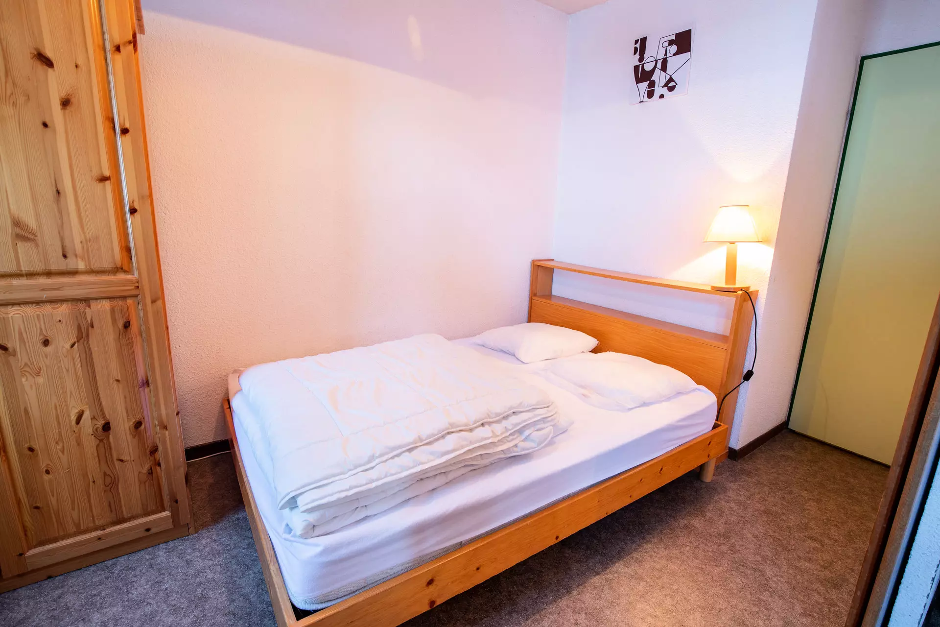Chambre (séparée du salon par une porte coulissante) : lit double