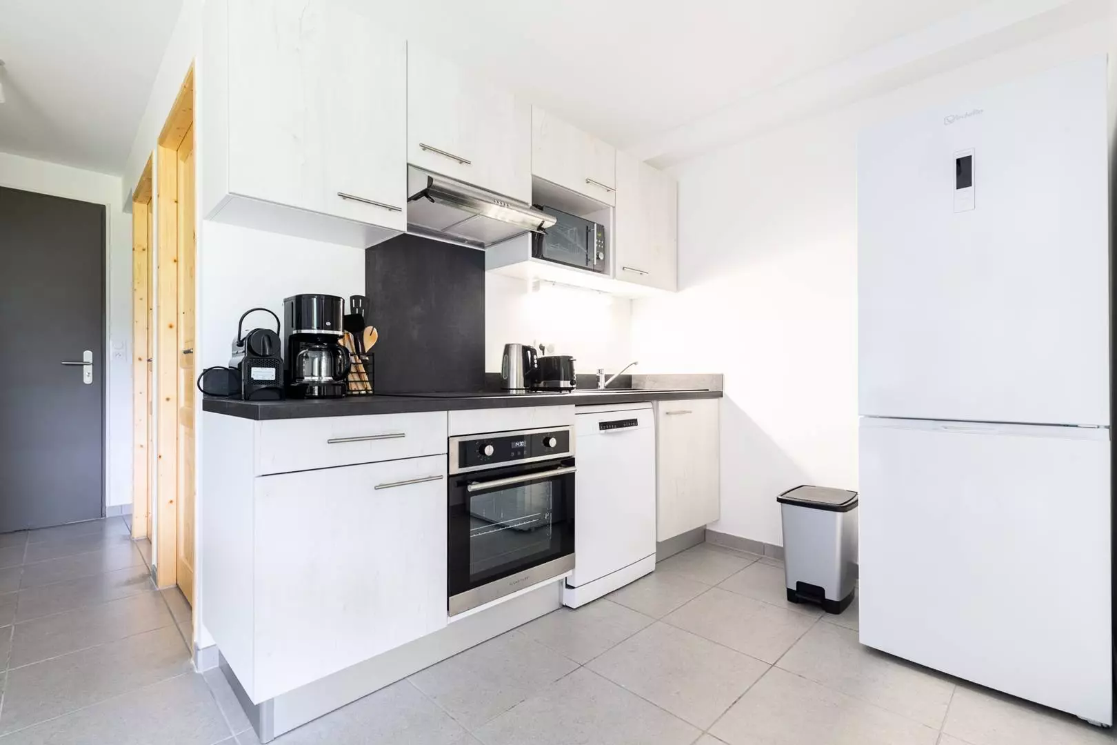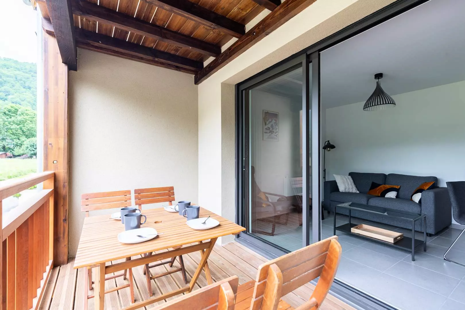 Cuisine équipée ouverte sur le séjour Terrasse ensoleillée /Mobilier extérieur/ Vue sur le lac