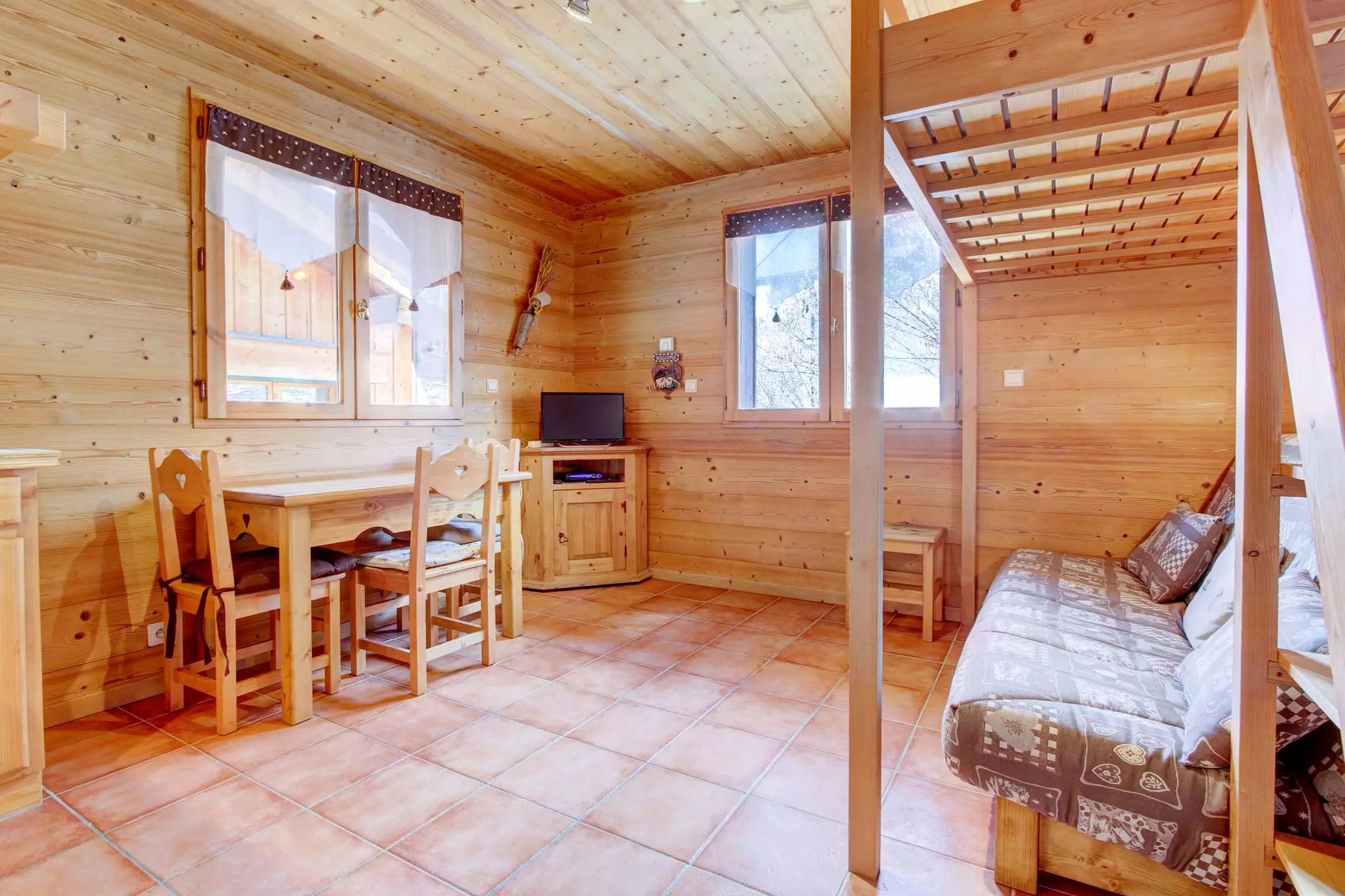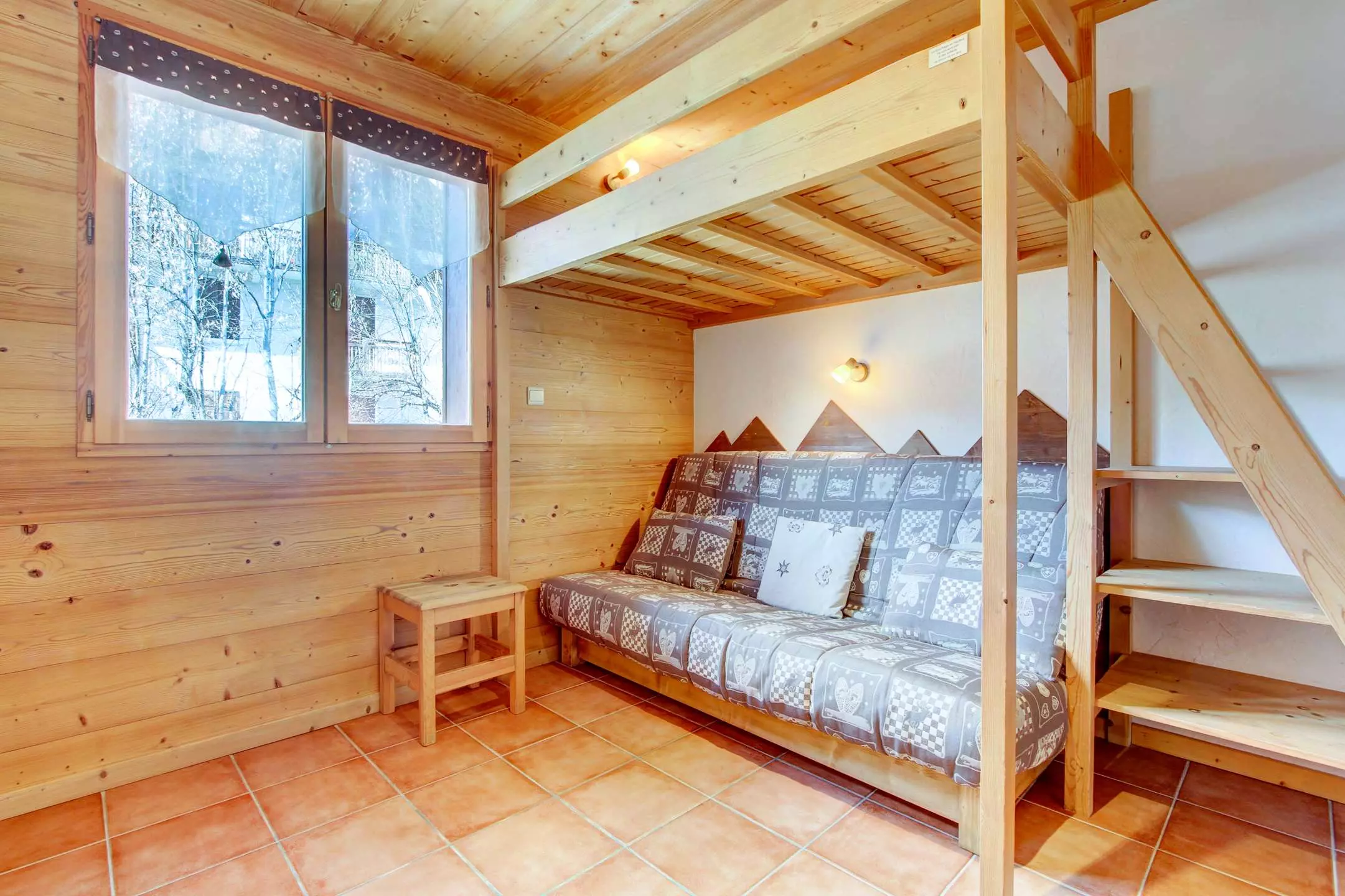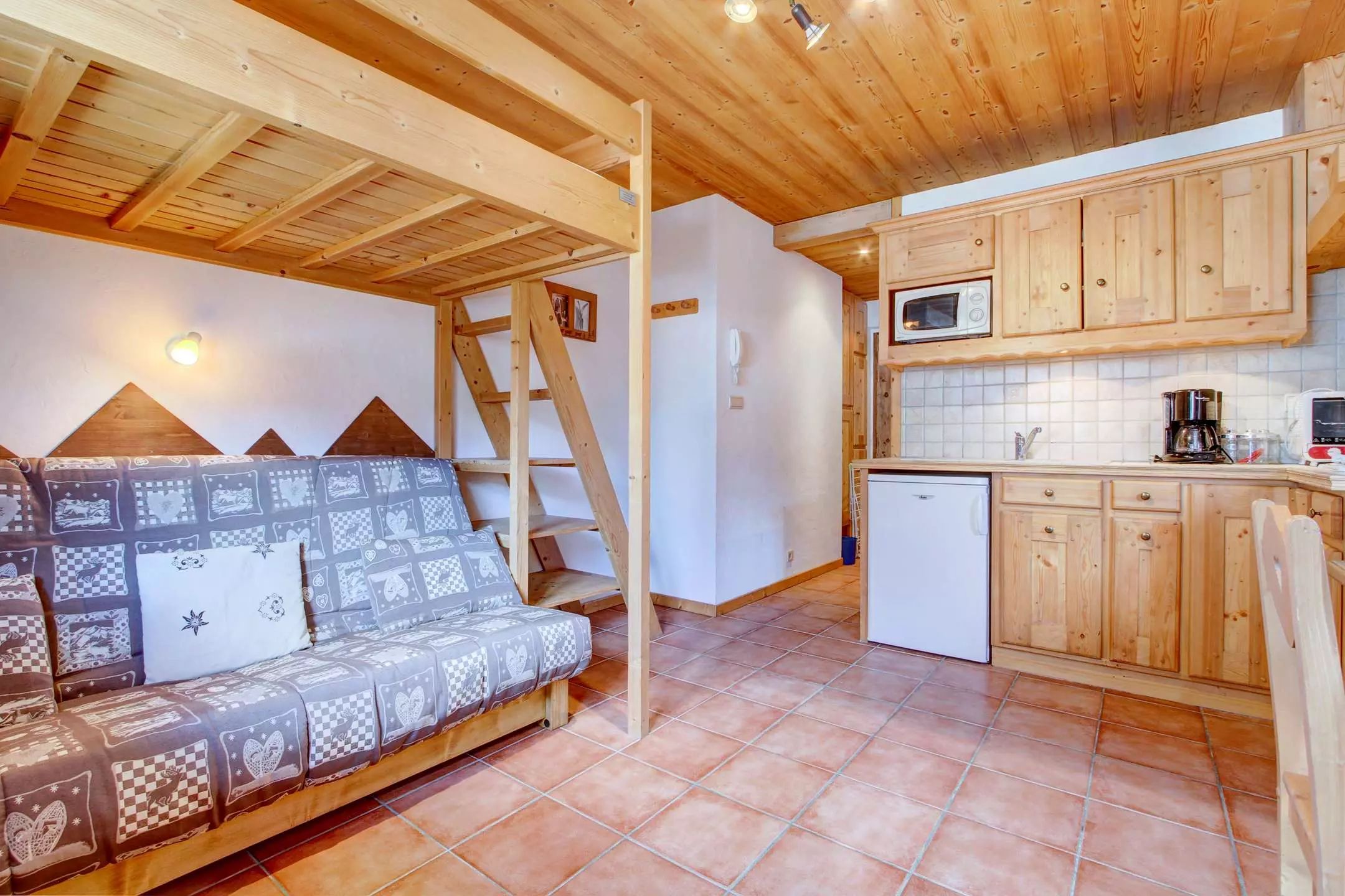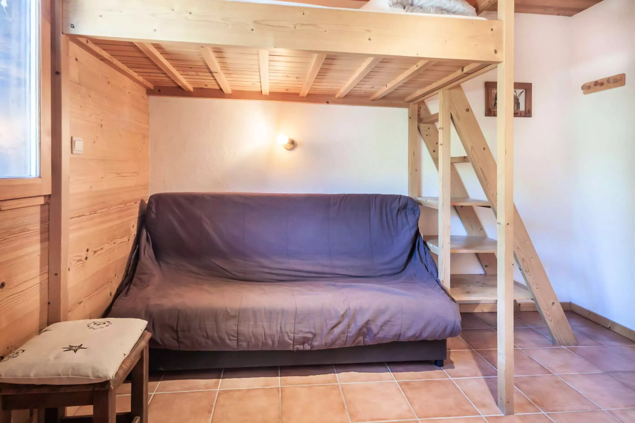 - Séjour avec un canapé clic-clac (2 pers) + lit mezzanine (2 pers) 120cm
