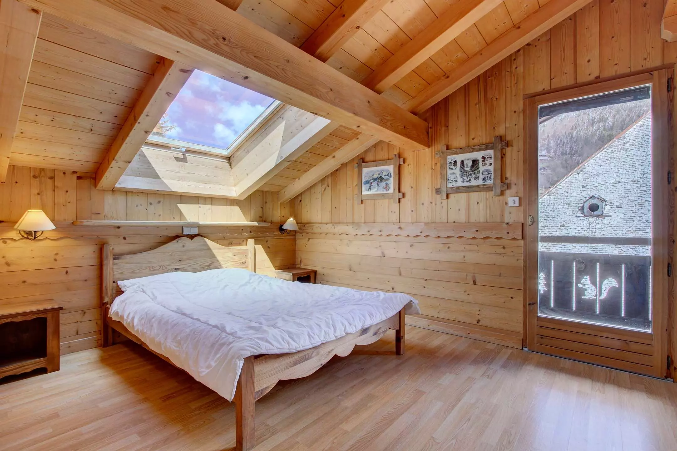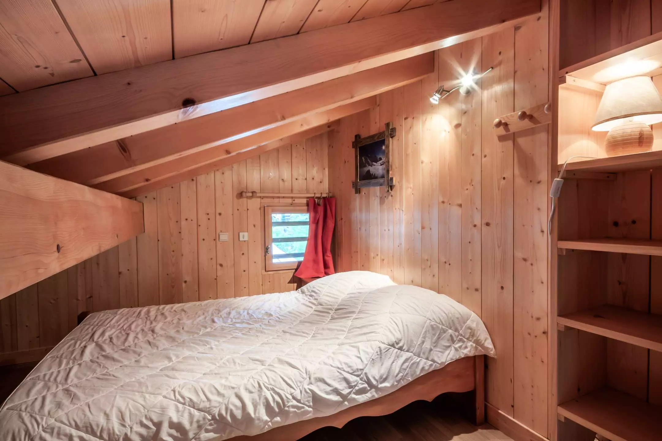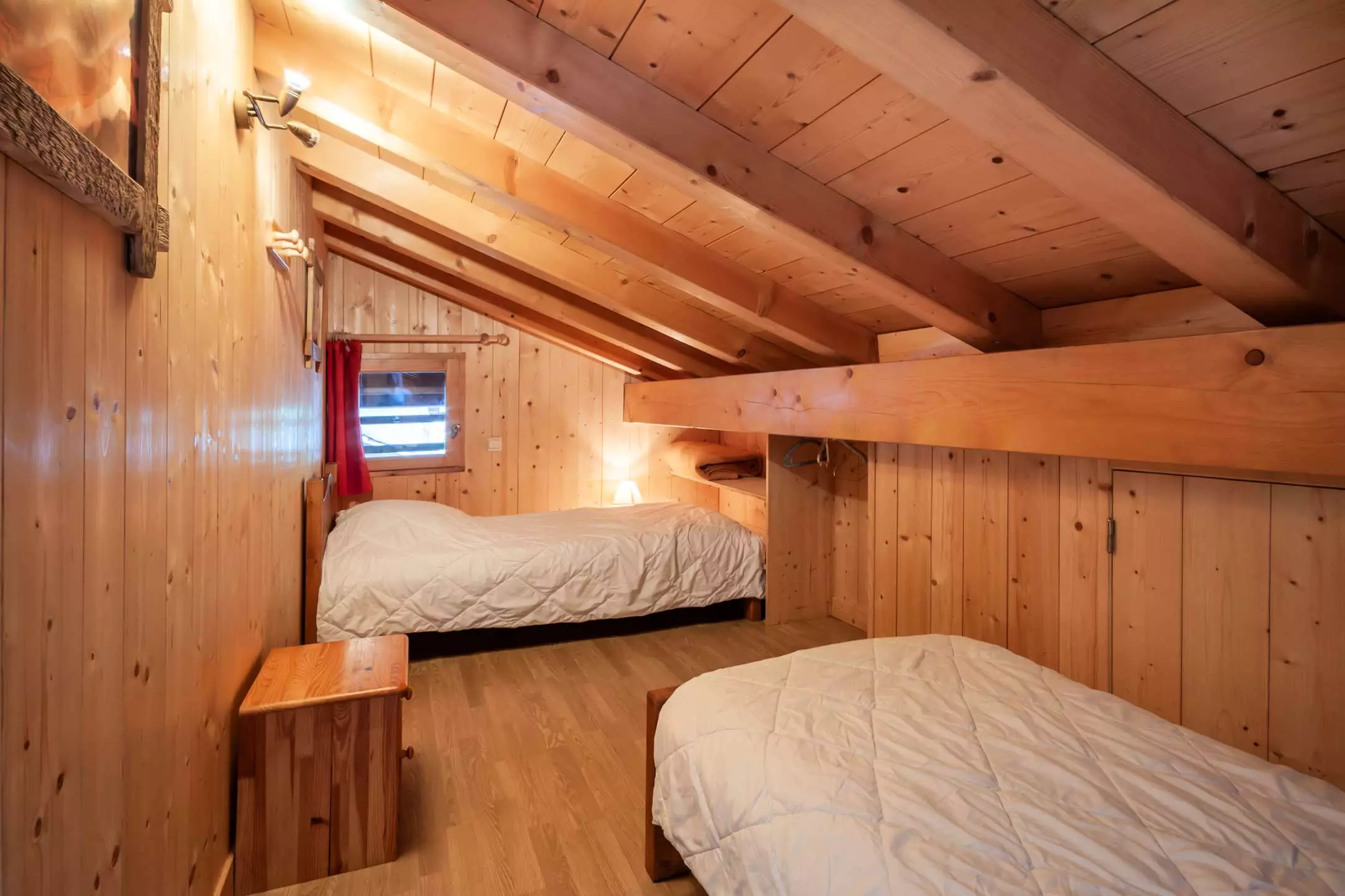 - 2 petites chambres très mansardées avec 2 lits simples dans une et 1 lit double de 140 cm dans l'autre.
