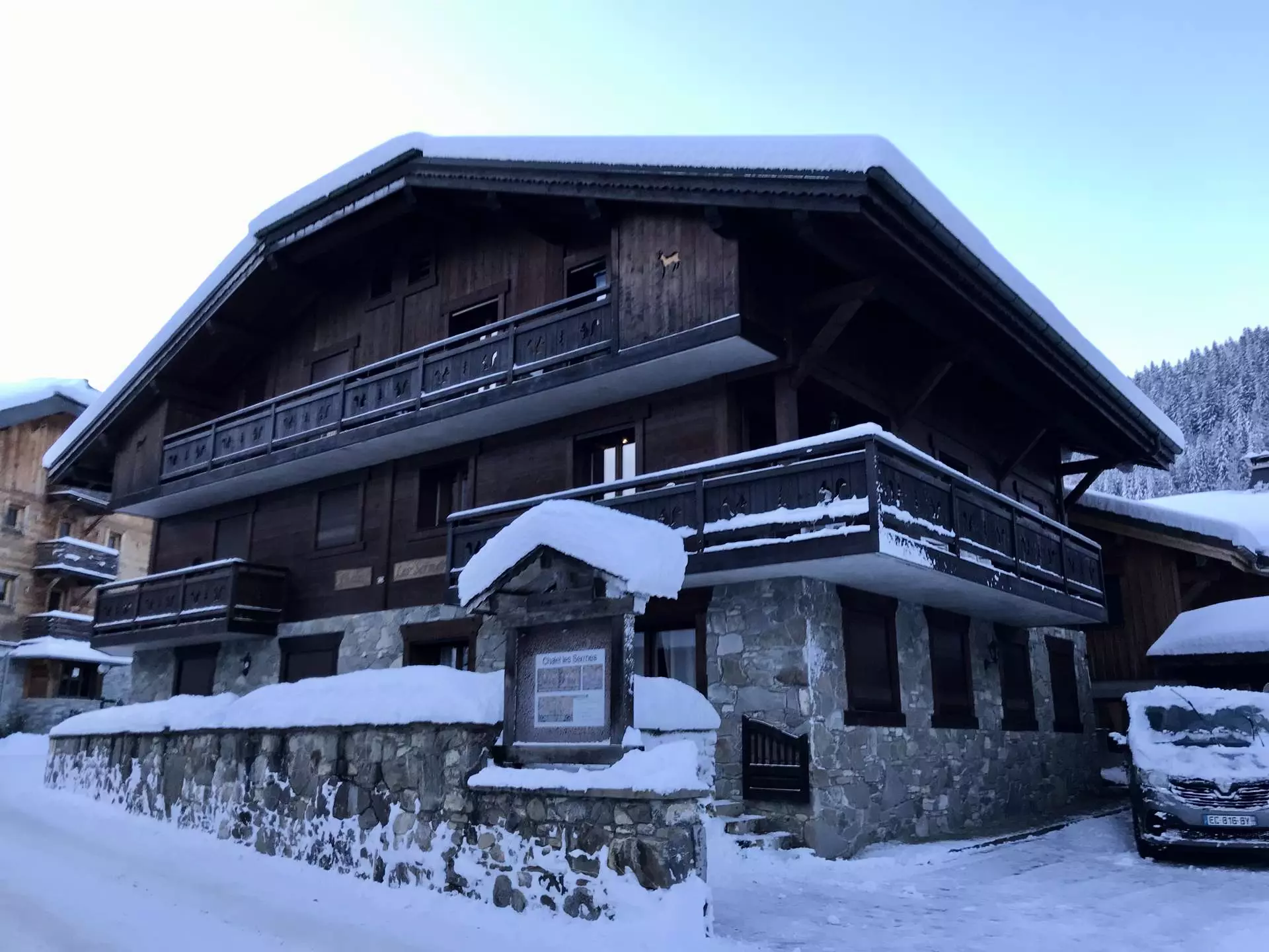 Situé à 400 m du centre du village et des pistes du Pléney. Navette à proximité. Appartement triplex de 100m² pour maximum 12 personnes situé au 1er étage d'un chalet et comprenant :