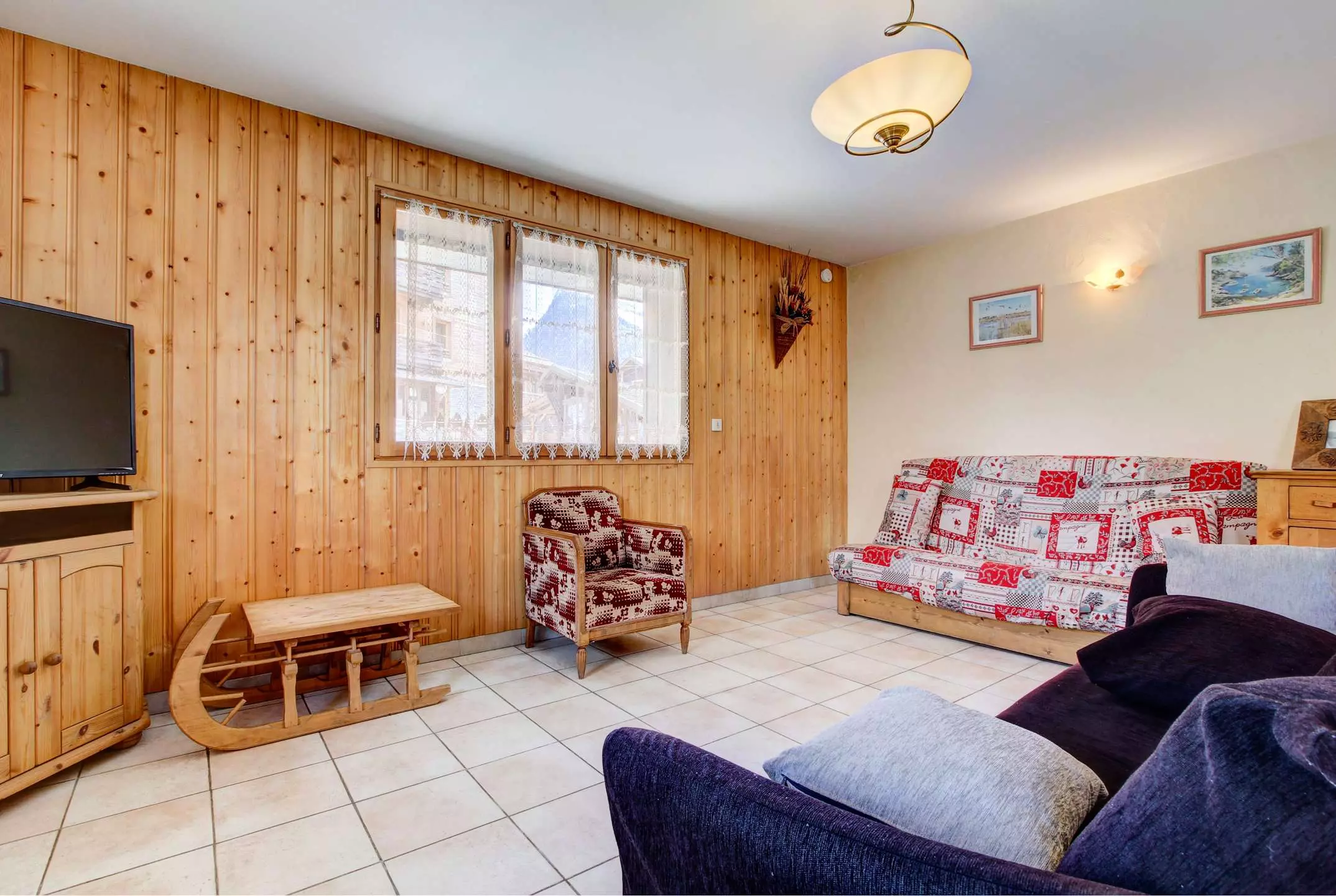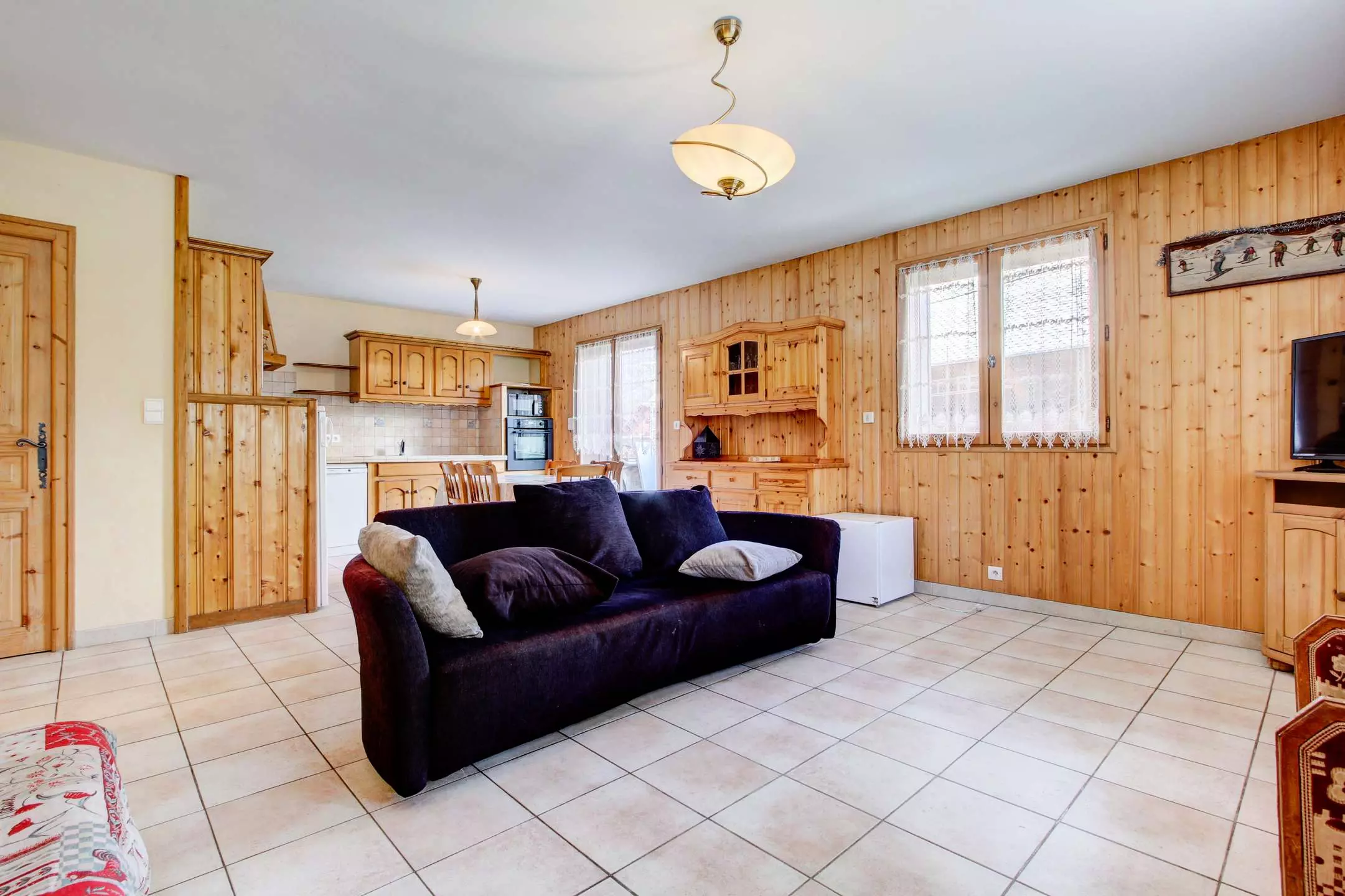 Sermes M304 est un joli appartement rénové, à 400 m du centre du village et des pistes du Pléney. Navette à proximité. Appartement de 80m² au rez-de-chaussée d'un chalet et comprenant :