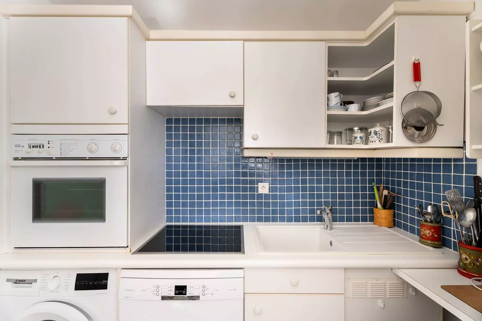 - Coin-cuisine équipé (plaques vitro 4 feux, four, réfrigérateur, lave-vaisselle, micro-ondes, lave-linge)