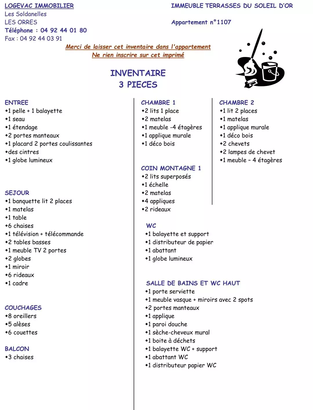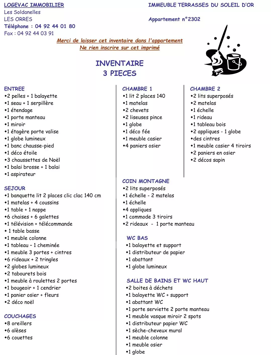 Le logementCe prix ne comprend pas