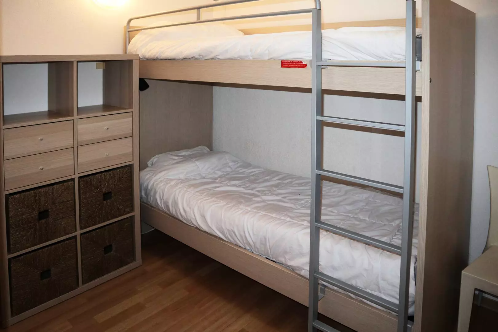 1er étage: chambre 1 avec un lit deux places, chambre 2 avec deux lits une place, un coin nuit avec 2 lits superposés une place, une salle de bain avec Wc.