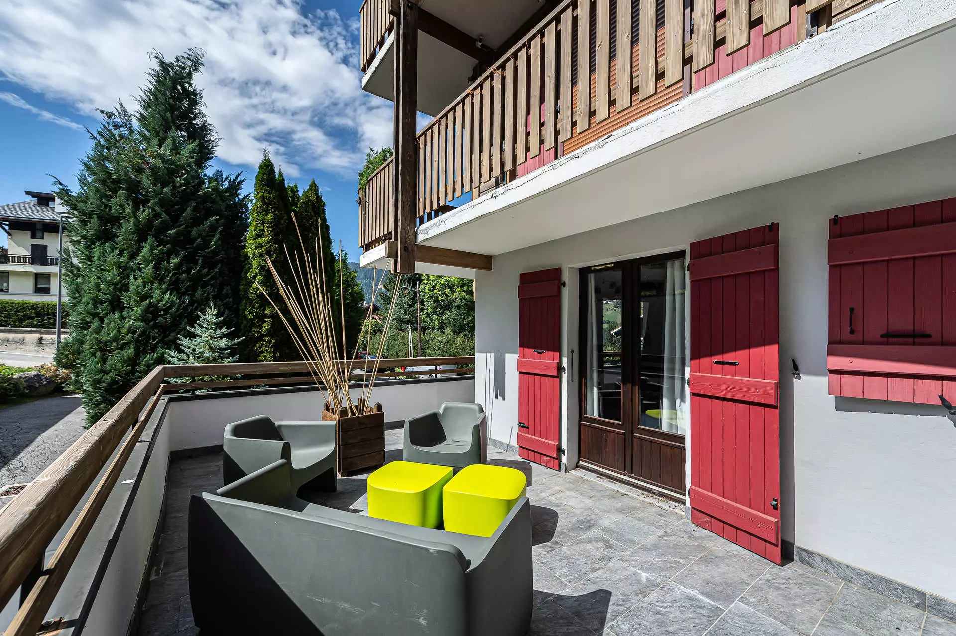 - Pièce de vie avec salon TV et accès balcon et terrasse avec mobilier extérieur