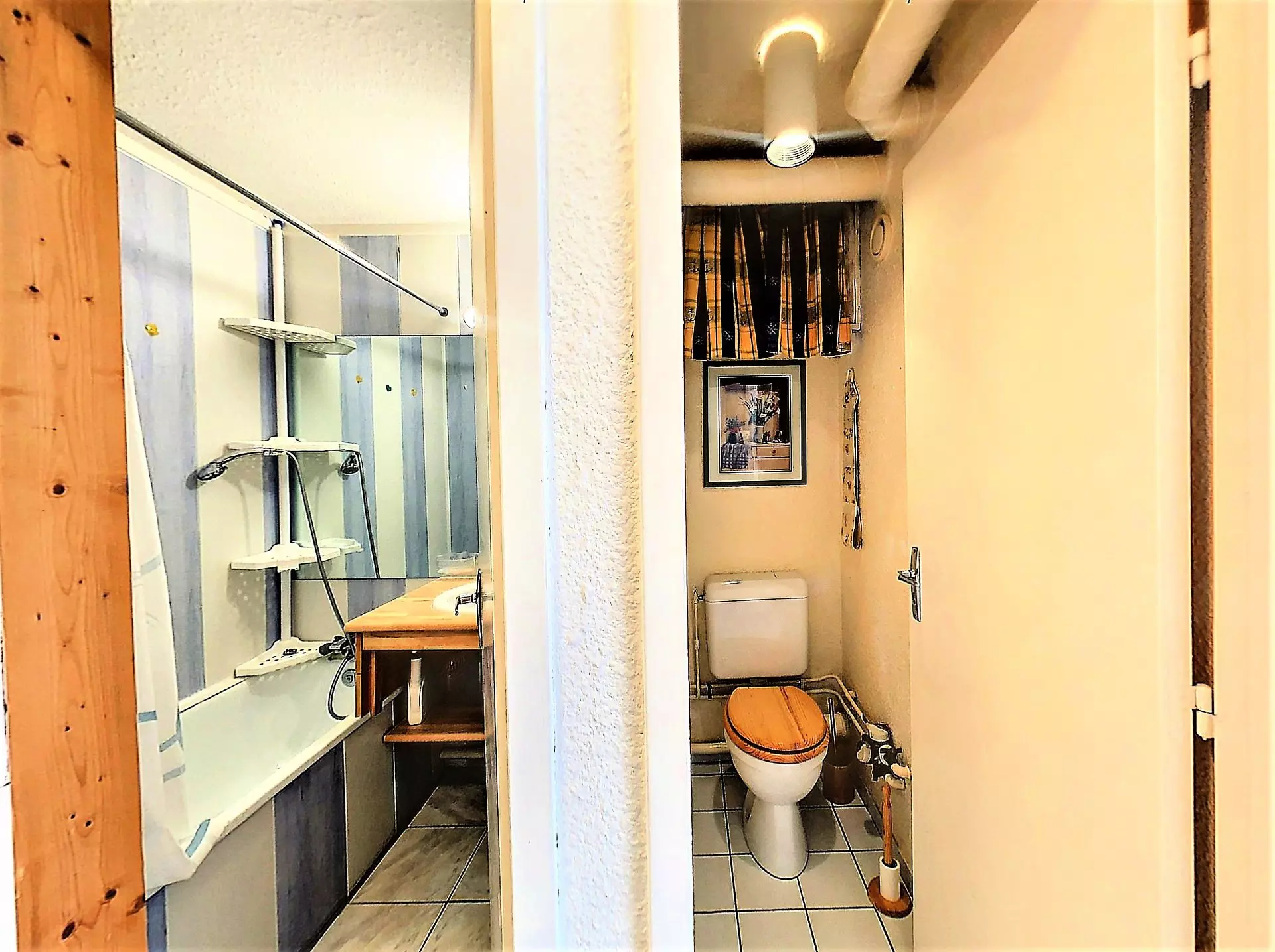 Studio bien équipé et cosy, comprenant une entrée, une salle de bain et des toilettes qui sont séparées.