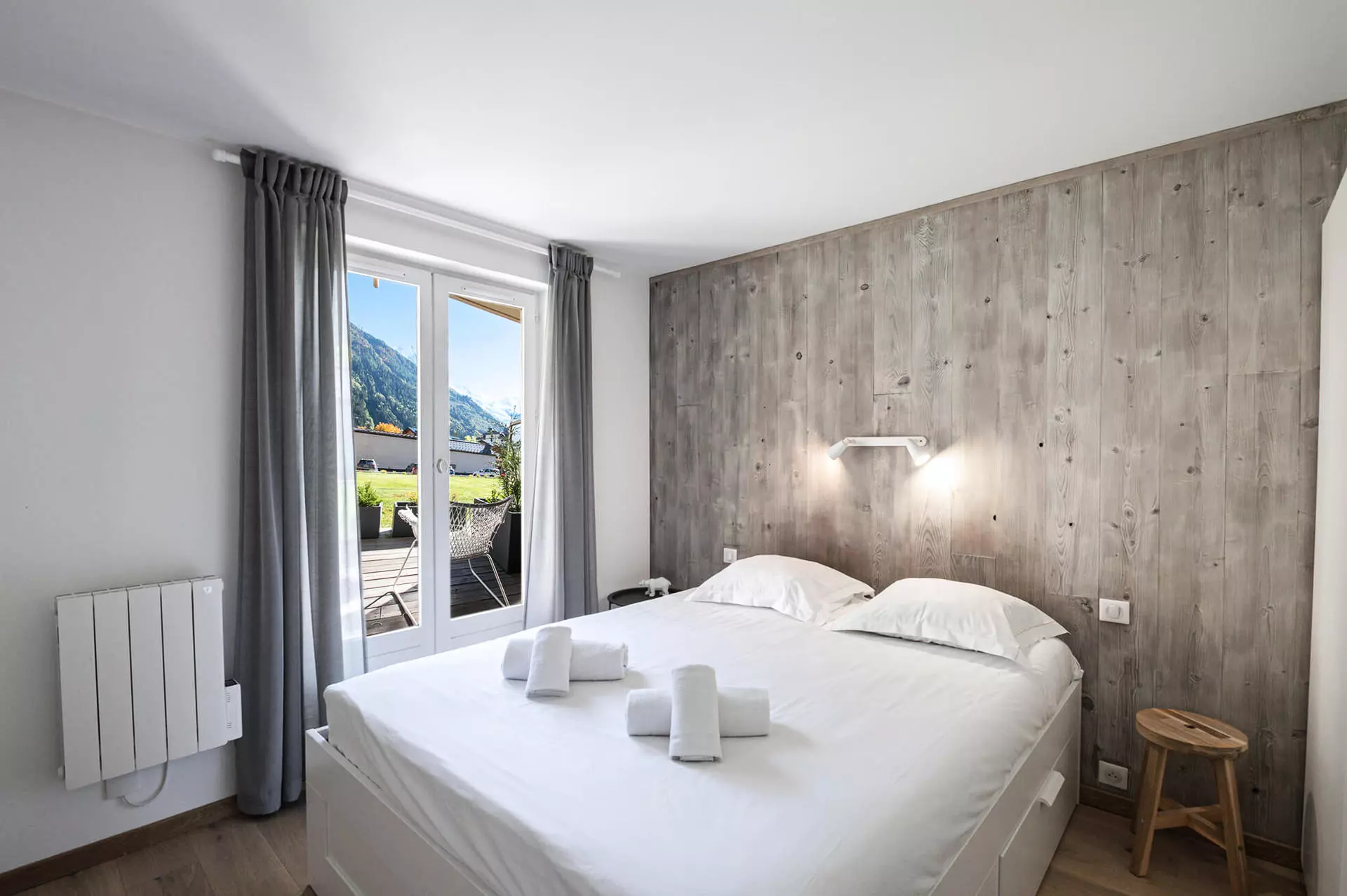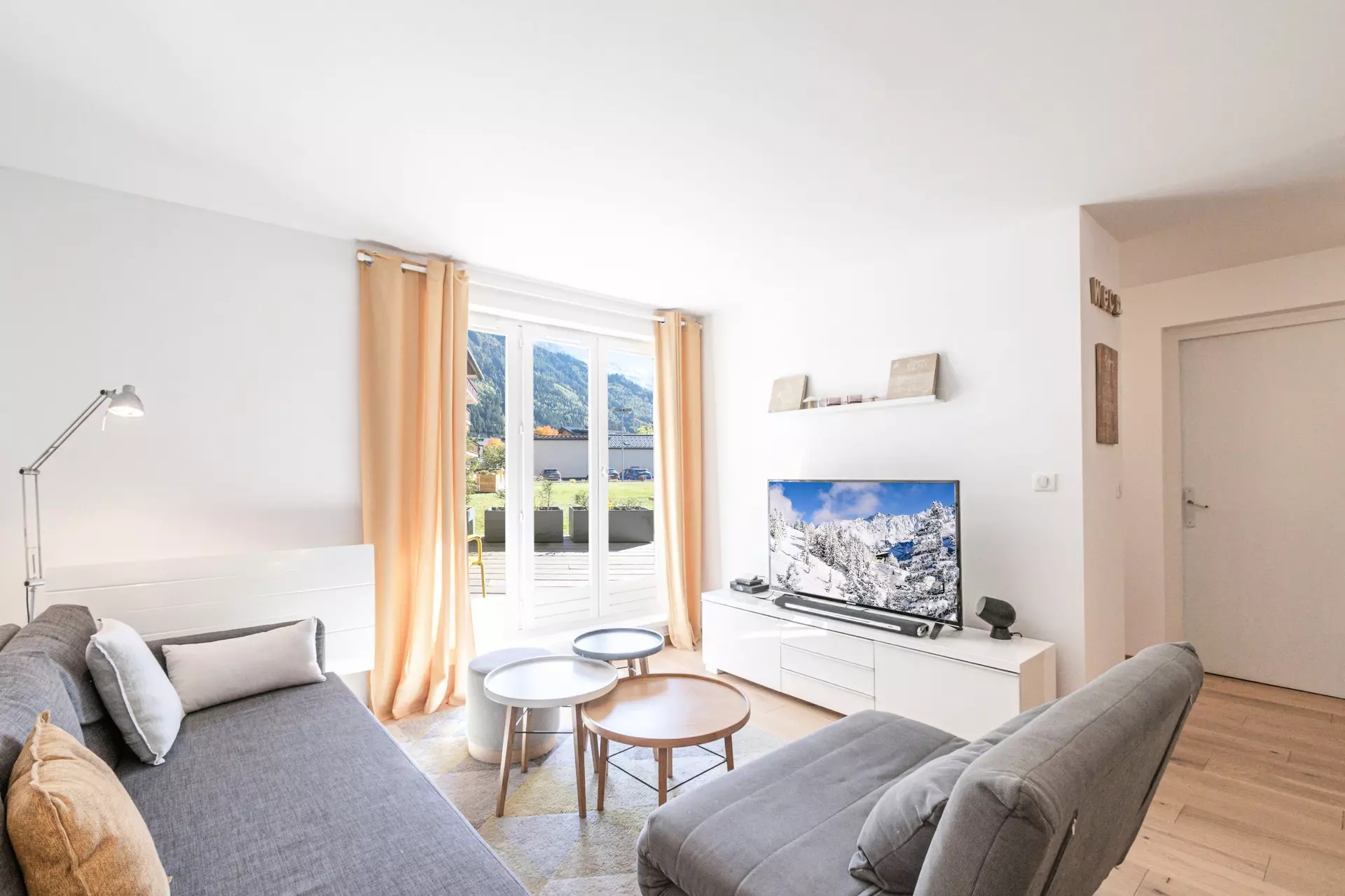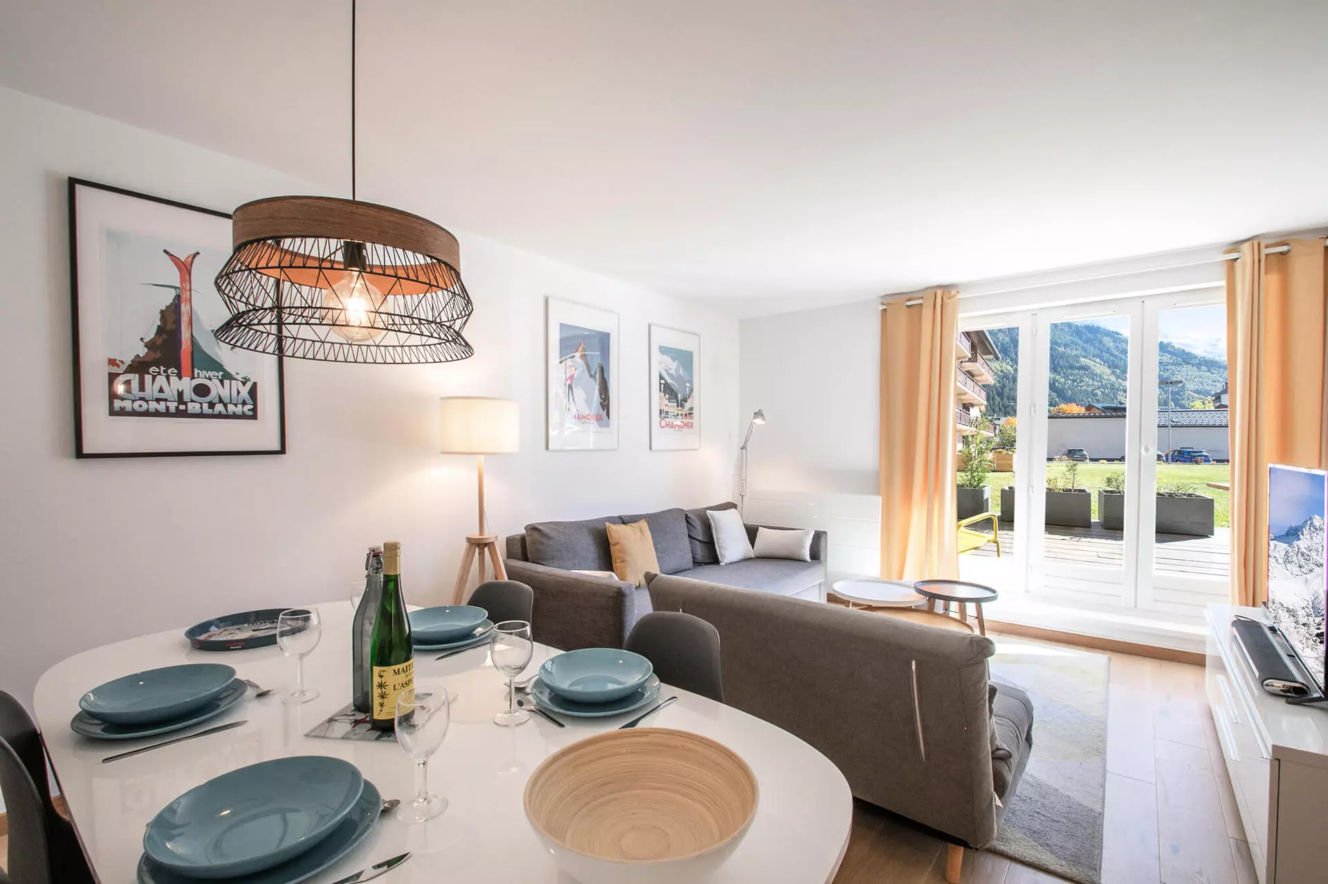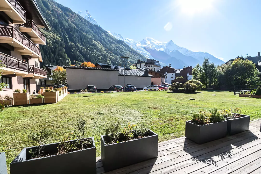 - Terrasse avec salon de jardin, exposition sud, vue Mont-Blanc