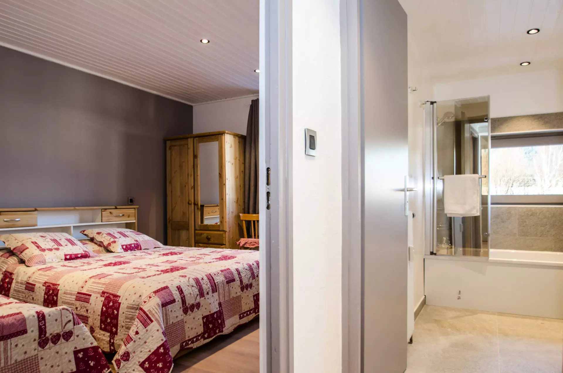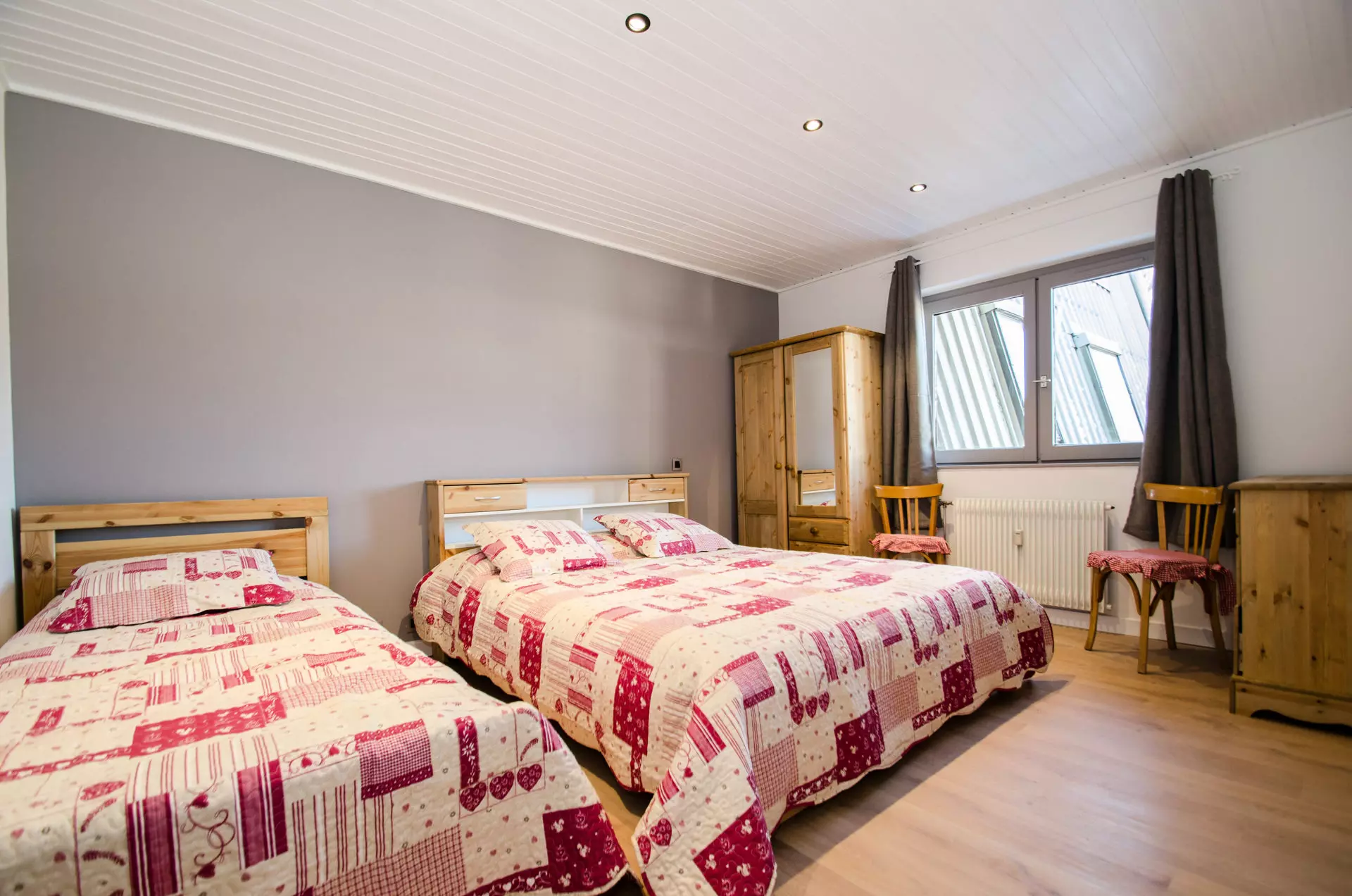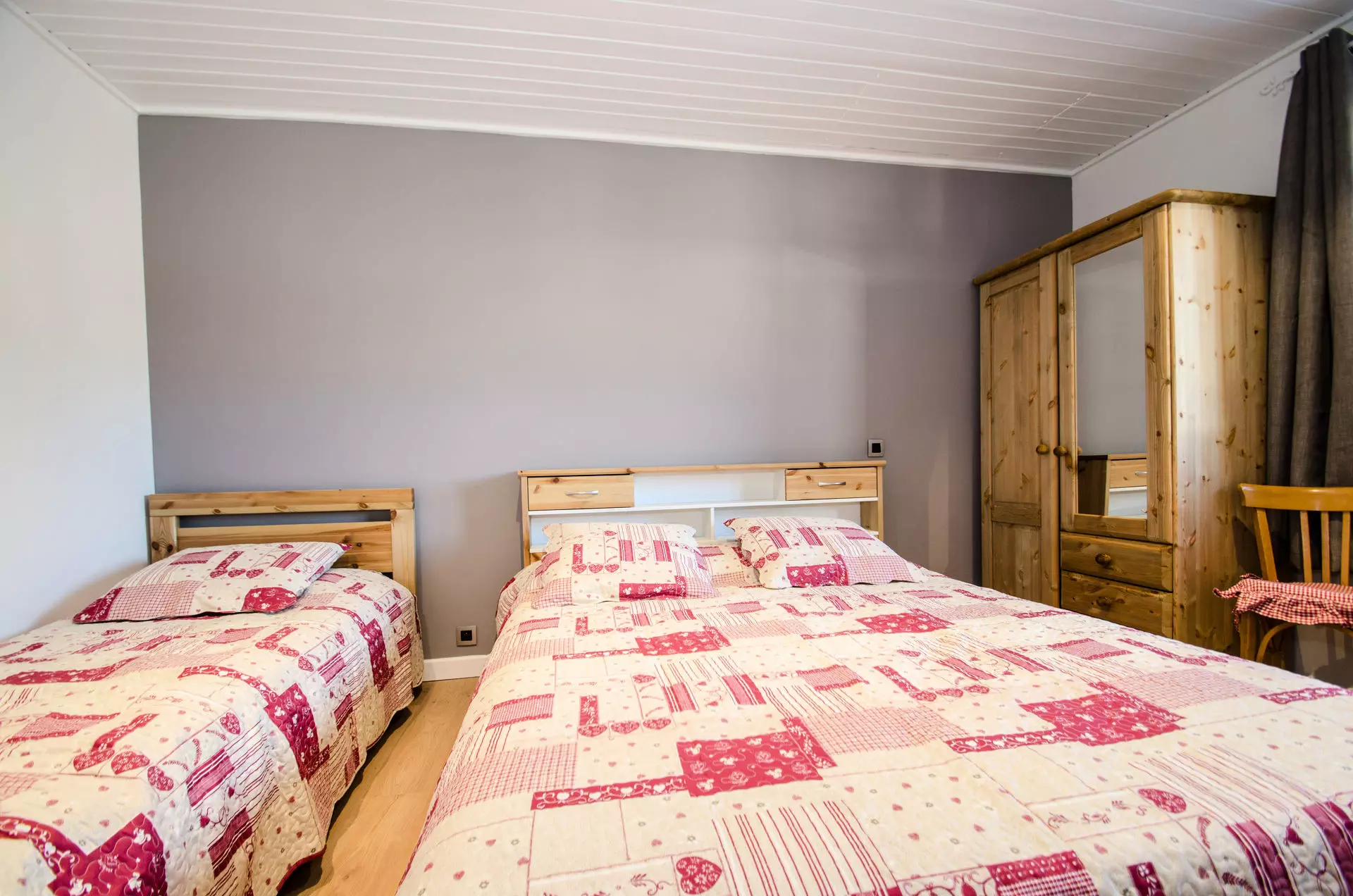 - Une chambre triple avec un lit simple (90x190) et un lit double (160x190)