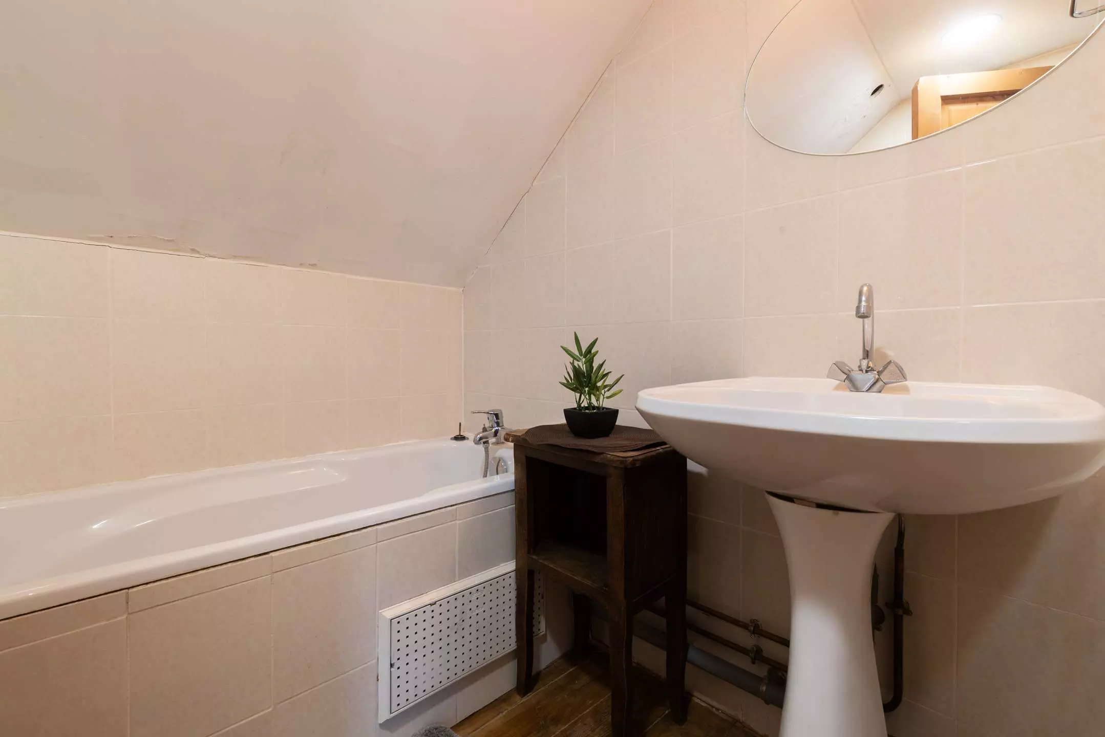 Dans la 2éme partie, vous trouverez à l'étage, un studio avec un grand lit, une mini kitchenette et une salle de bains. Au rez de chaussée, une chambre avec deux petits lits et salle de bain privative!
