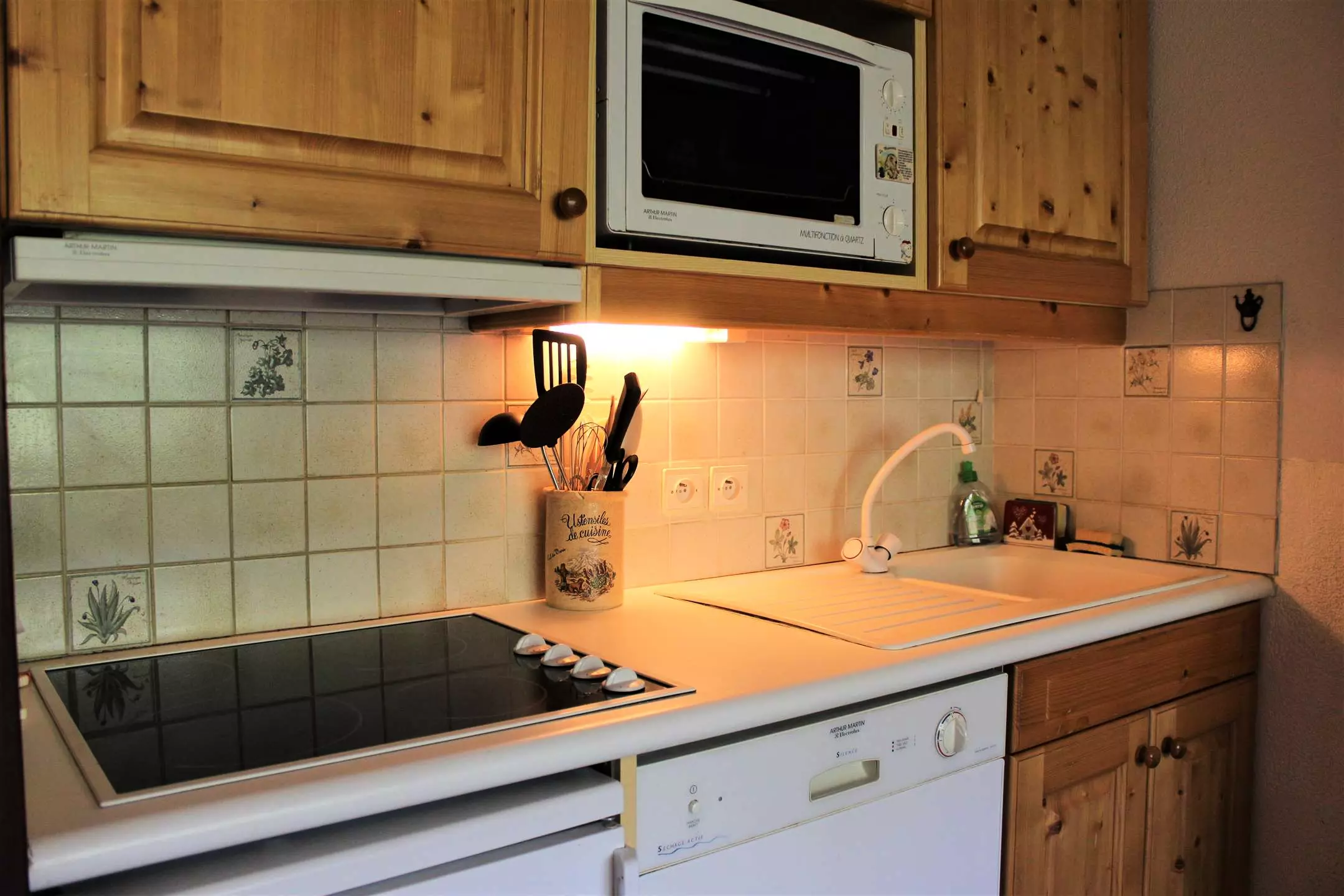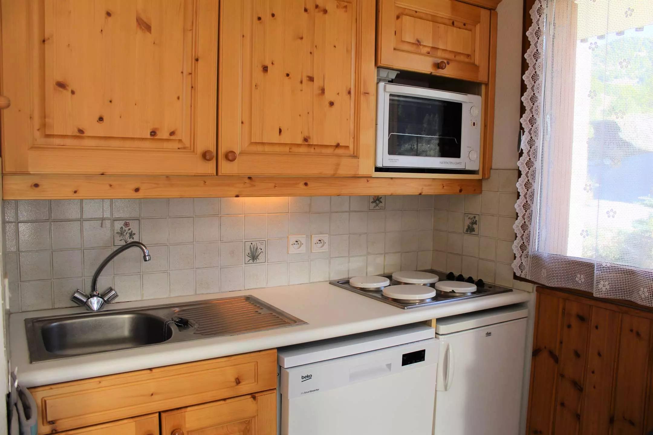 Cet appartement à la montagne se compose d'un coin cuisine équipé et d'un séjour . Il comprend d'une première chambre avec un lit double et d'une seconde chambre avec deux lits superposés une place. Vous disposez d'une salle de bains avec baignoire et d'un WC séparé.