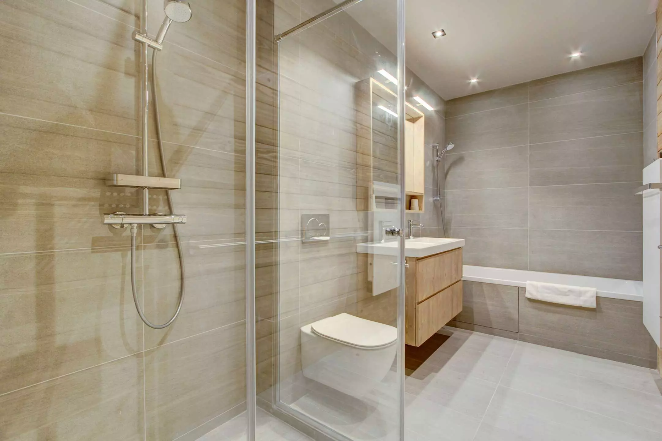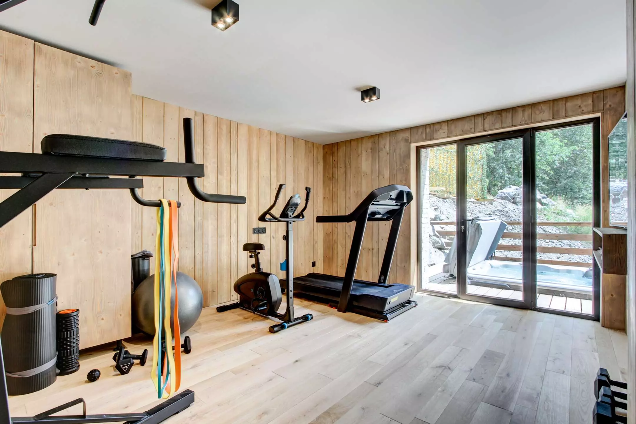 Sauna, salle de fitness, accès terrasse avec spa, buanderie équipée lave-linge + sèche-linge