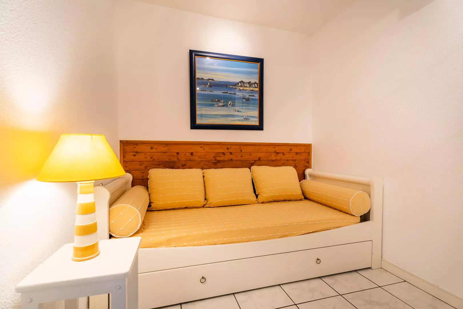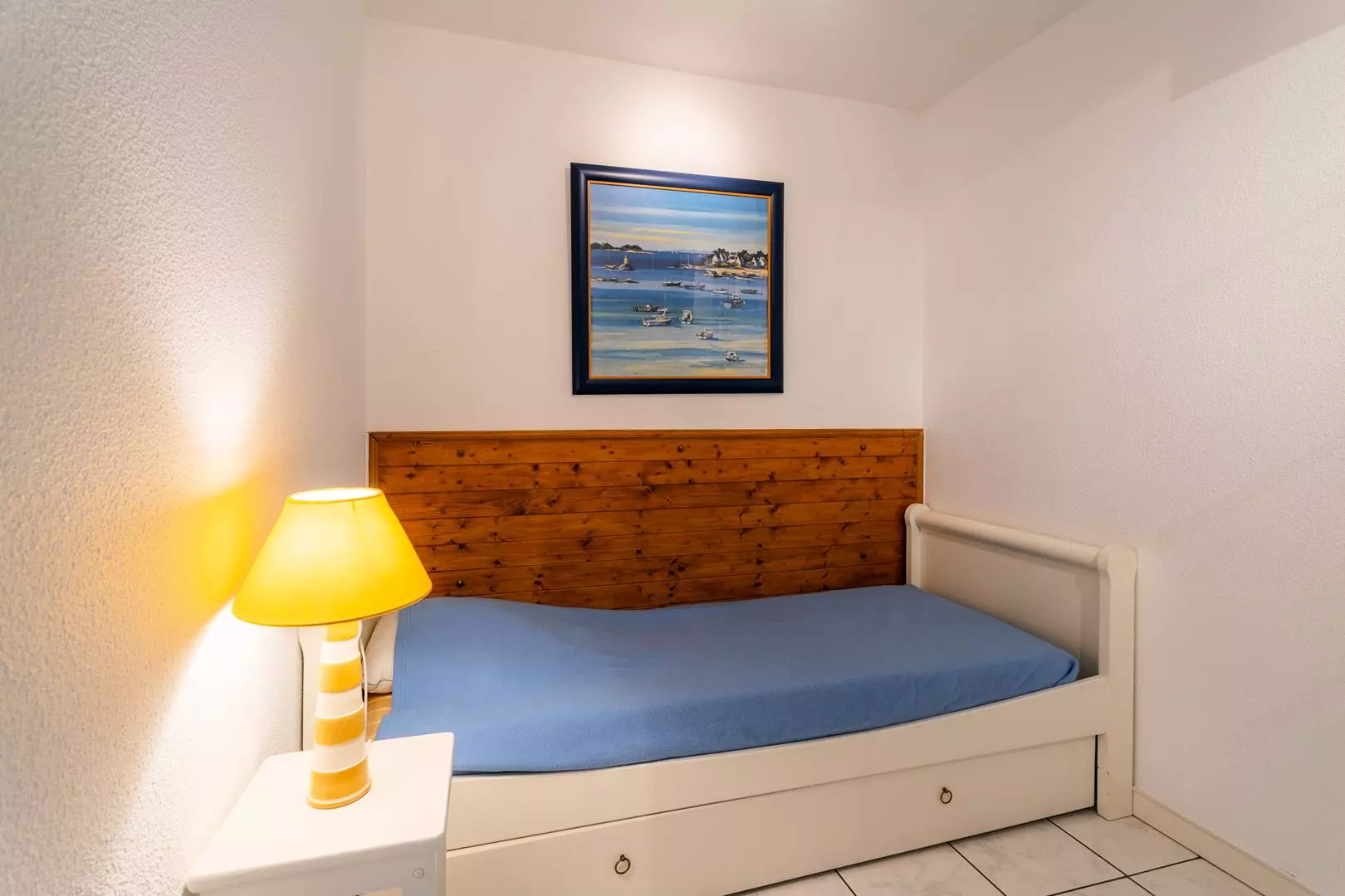 - 1 chambre cabine avec 2 lits gigognes (80, couvertures)
