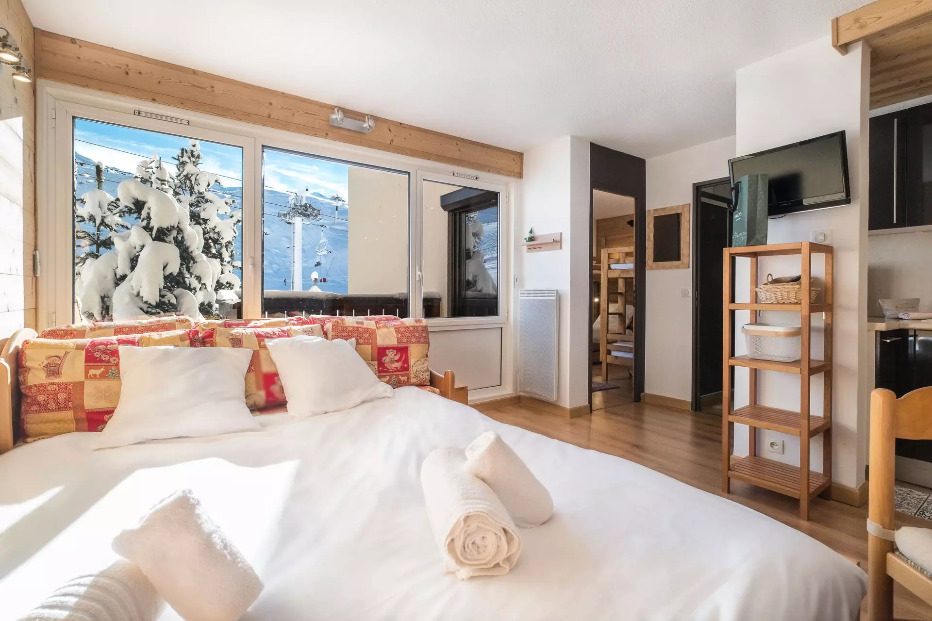 Appartement ski aux pieds de 33 m² pour 5 personnes avec une superbe vue panoramique sur les montagnes, exposé plein sud. Il est situé dans la résidence l'Olympic, dans un quartier calme et très apprécié de Val Thorens.