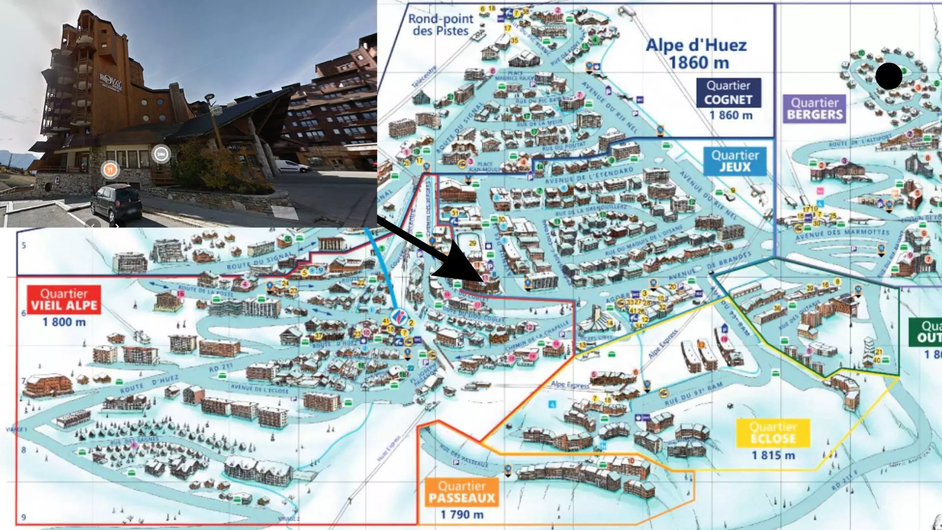 L'Alpe d'Huez s'est développée à 1860 mètres d'altitude sur le massif des Grandes Rousses et bénéficie d'un ensoleillement généreux.