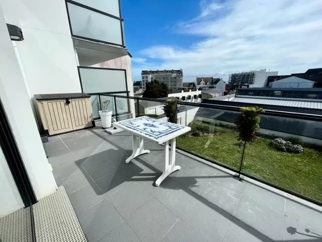 Ce charmant deux pièces pour deux personnes de 40m² se situe au 1er étage, porte 102, bâtiment A de la résidence "Parc Océan", à seulement 300m des commerces et de la grande plage de Quiberon.