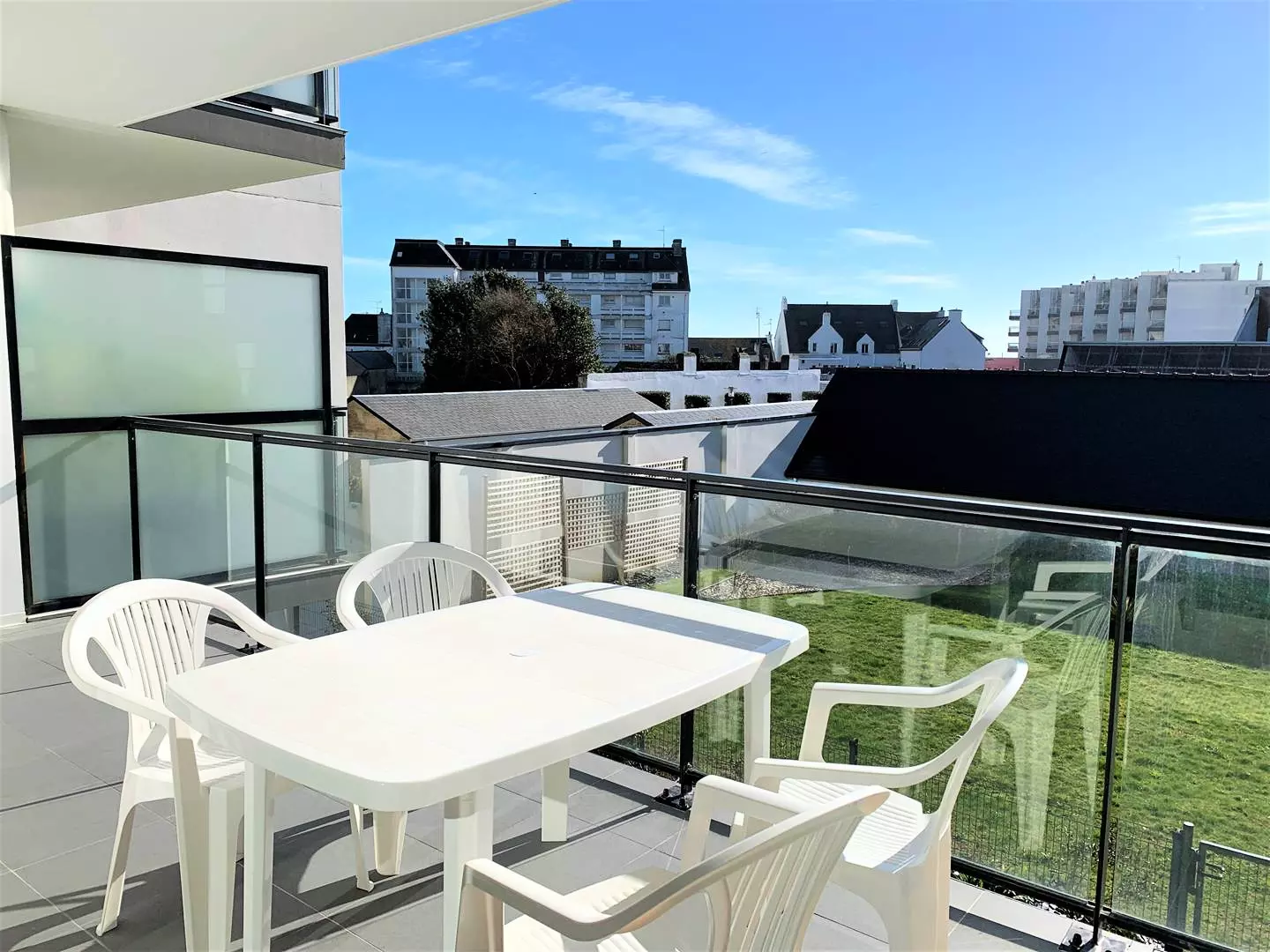 Parking privé n°14 dans la résidence. Balcon exposé sud-ouest avec meubles de jardin.