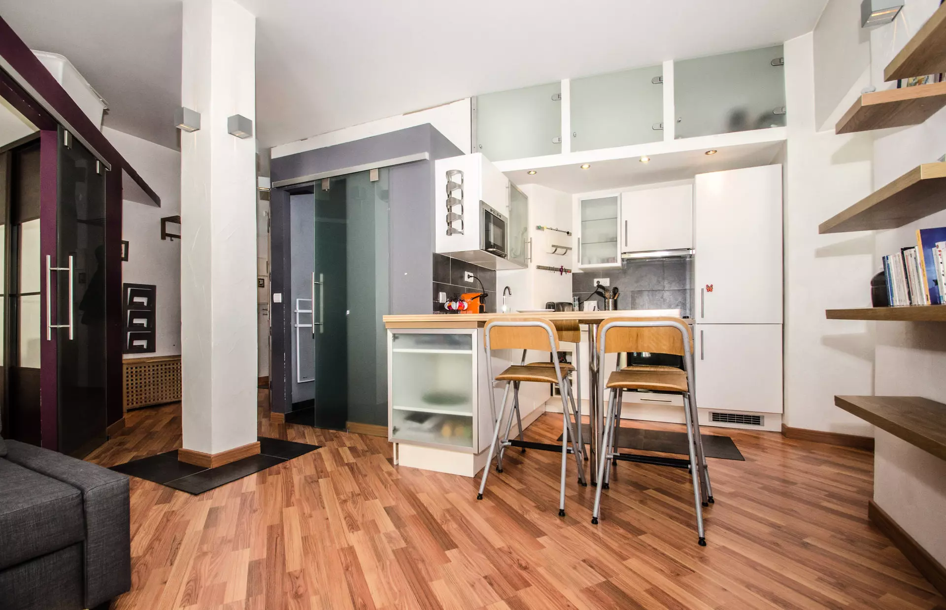 Bel appartement de 37 m², classé 3 étoiles, pour 4 personnes, situé au 1er étage de la résidence Pavillon au coeur de la zone piétonne de Chamonix.