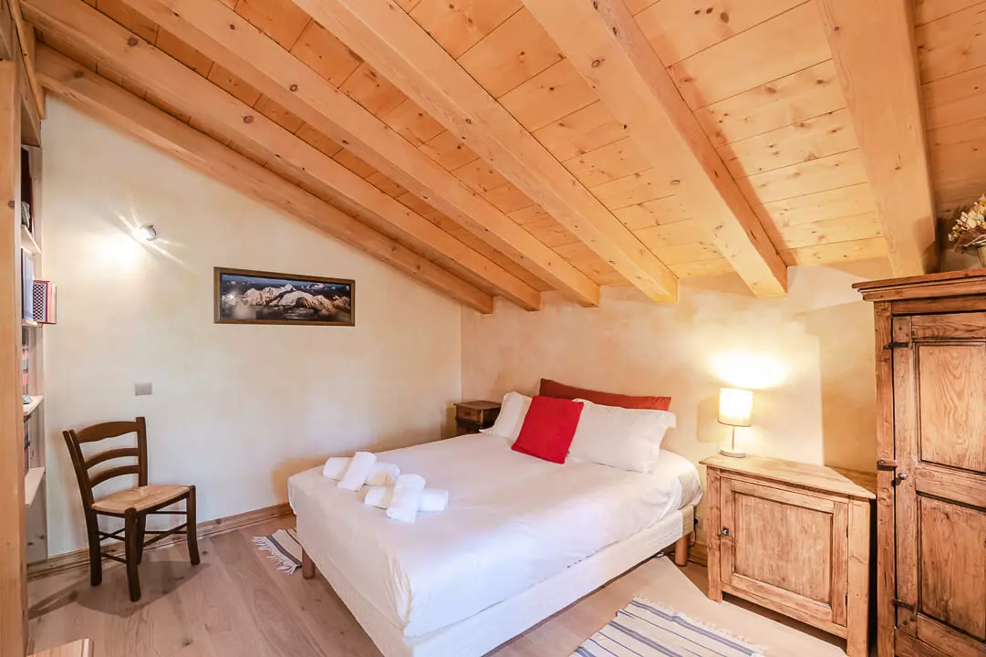 Ce chalet de caractère de 210m², classé 3 étoiles, est réparti sur 2 niveaux et peut accueillir 12 personnes dans ses 6 chambres. Situé à 5 km de Chamonix, dans le quartier des Tines il offre une belle vue sur le Mont Blanc.