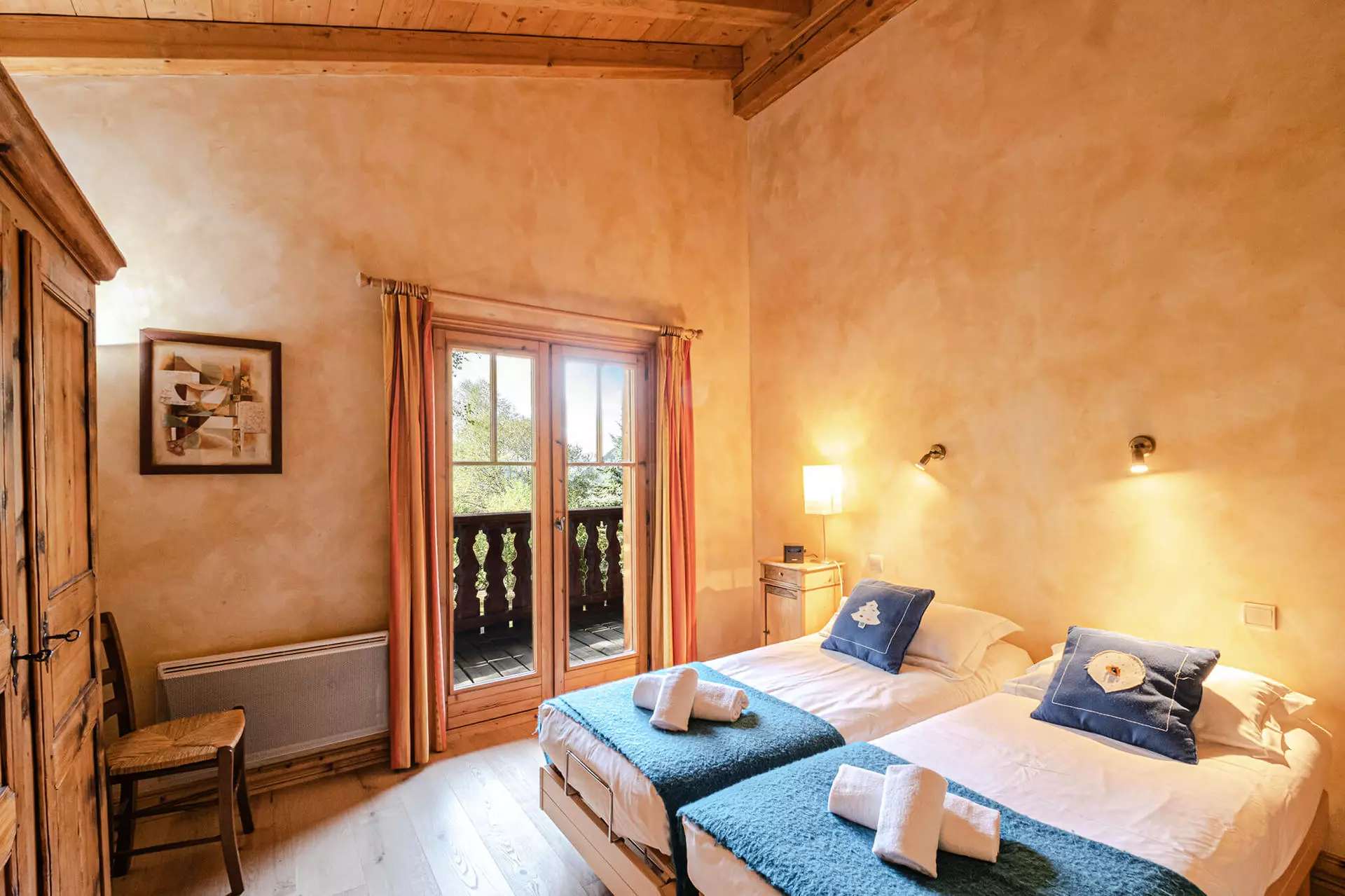 - Chambre avec deux lits simples articulés (80x185) et balcon