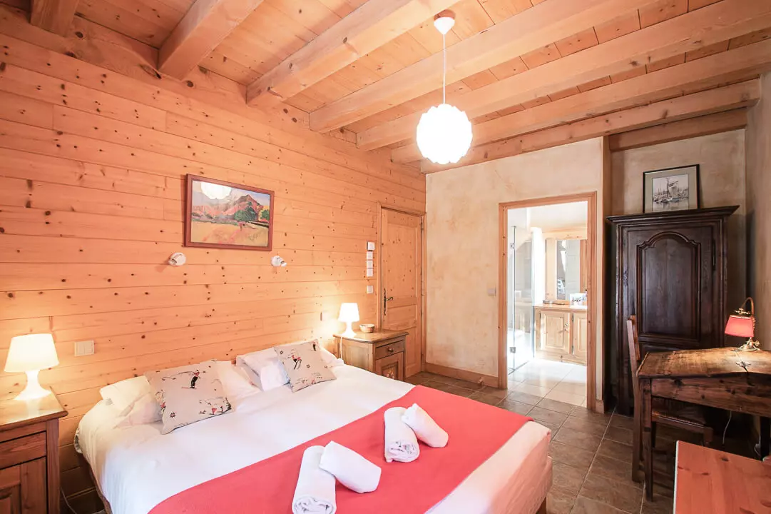 - Chambre avec lit double (160x200), salle de douche privative et toilettes (adaptée pour un fauteuil roulant)