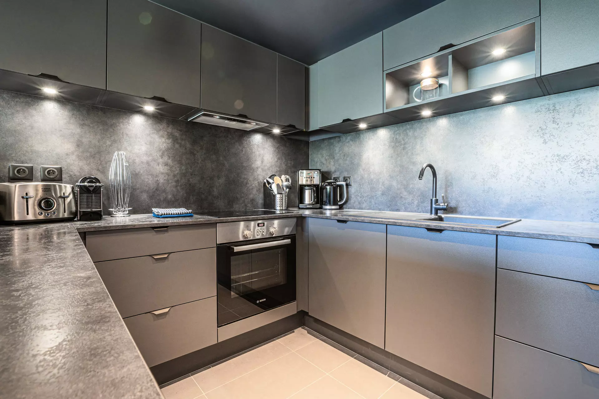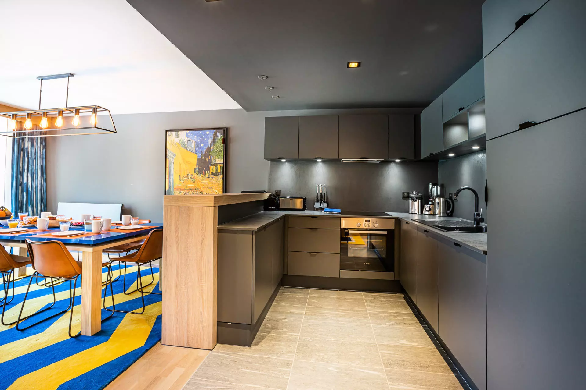 - Cuisine équipée ouverte sur le coin repas et le salon