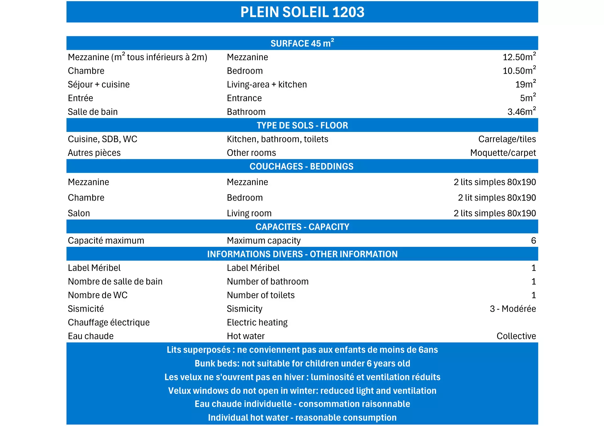 2 Pièces avec Mezzanine (soupentée), 6 Personnes, 45m², Balcon Sud