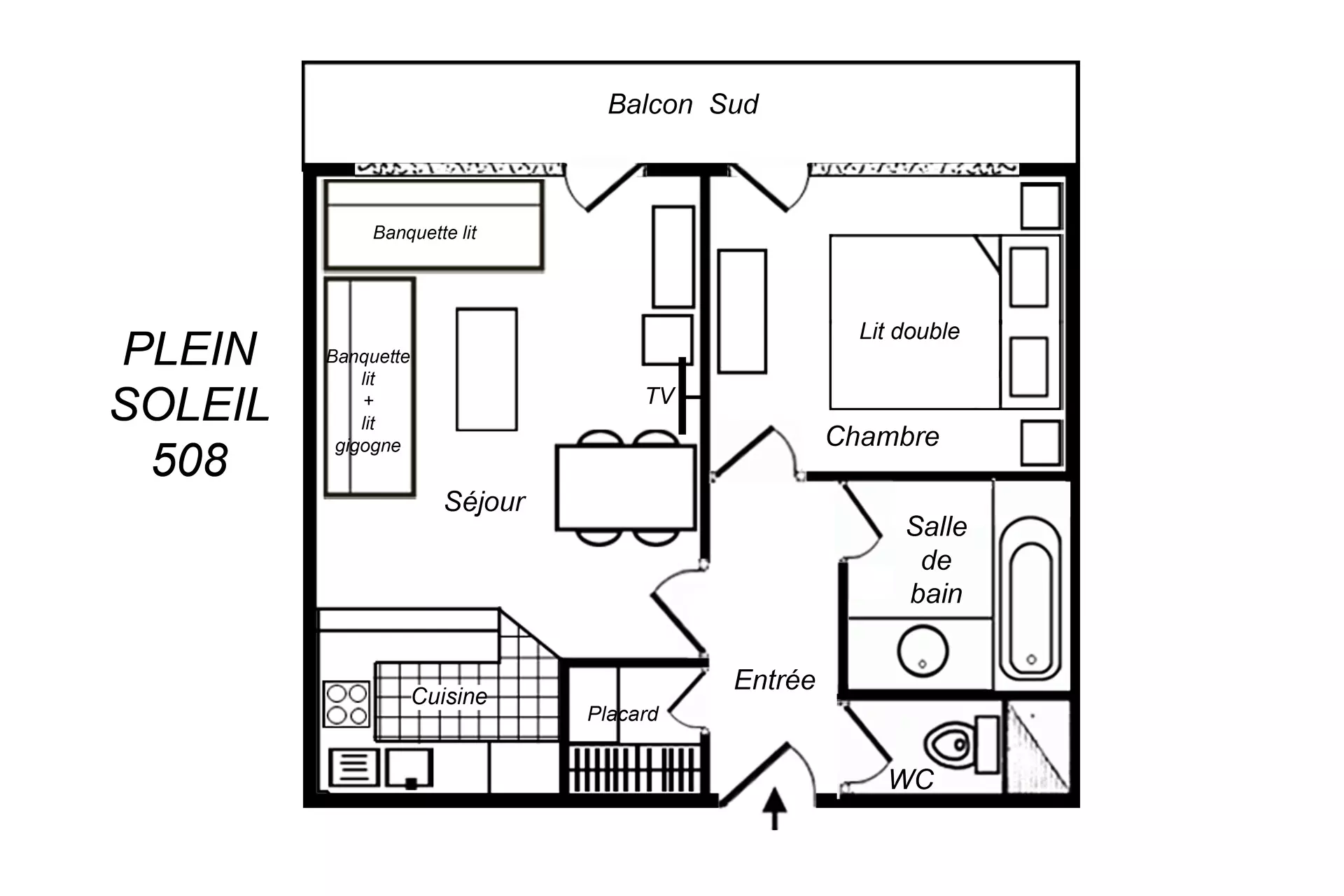 2 Pièces, 5 Personnes, 40m², Balcon Sud, Chambre au Nord,