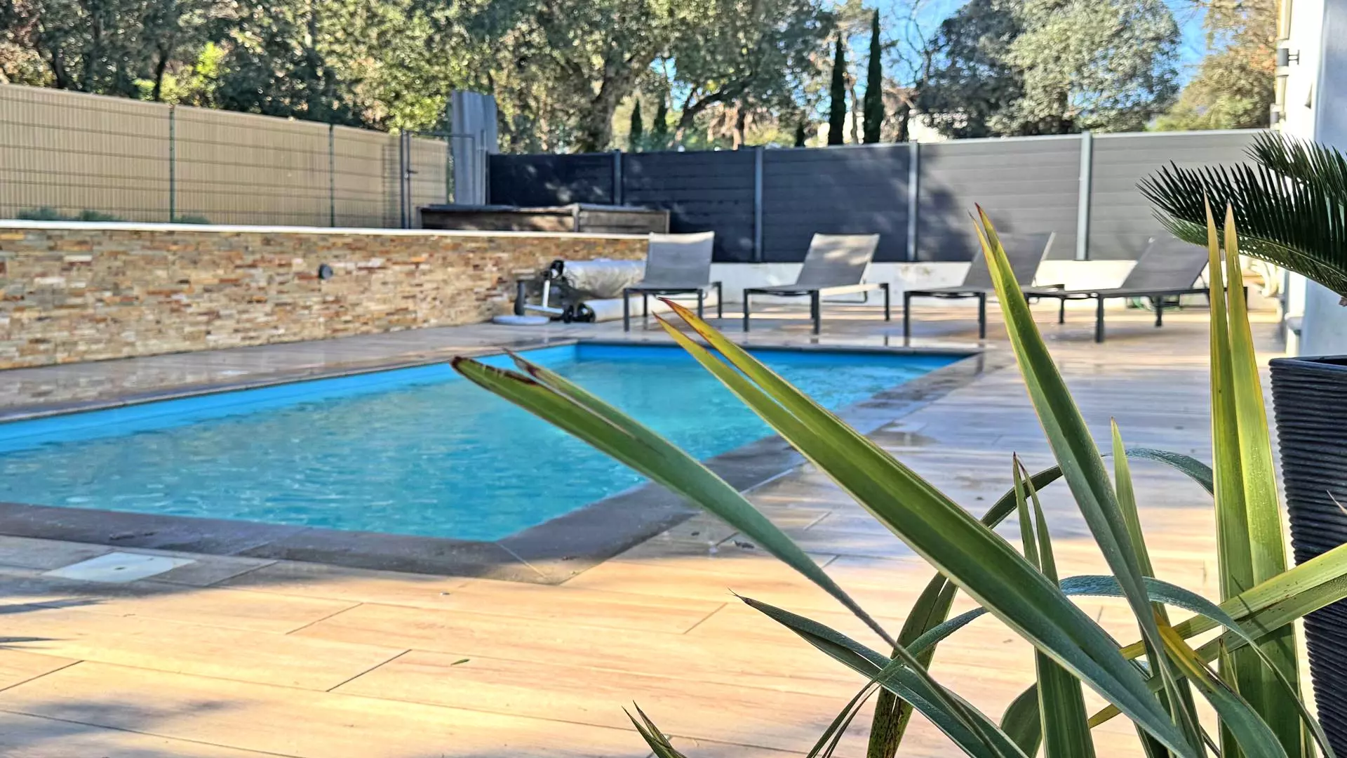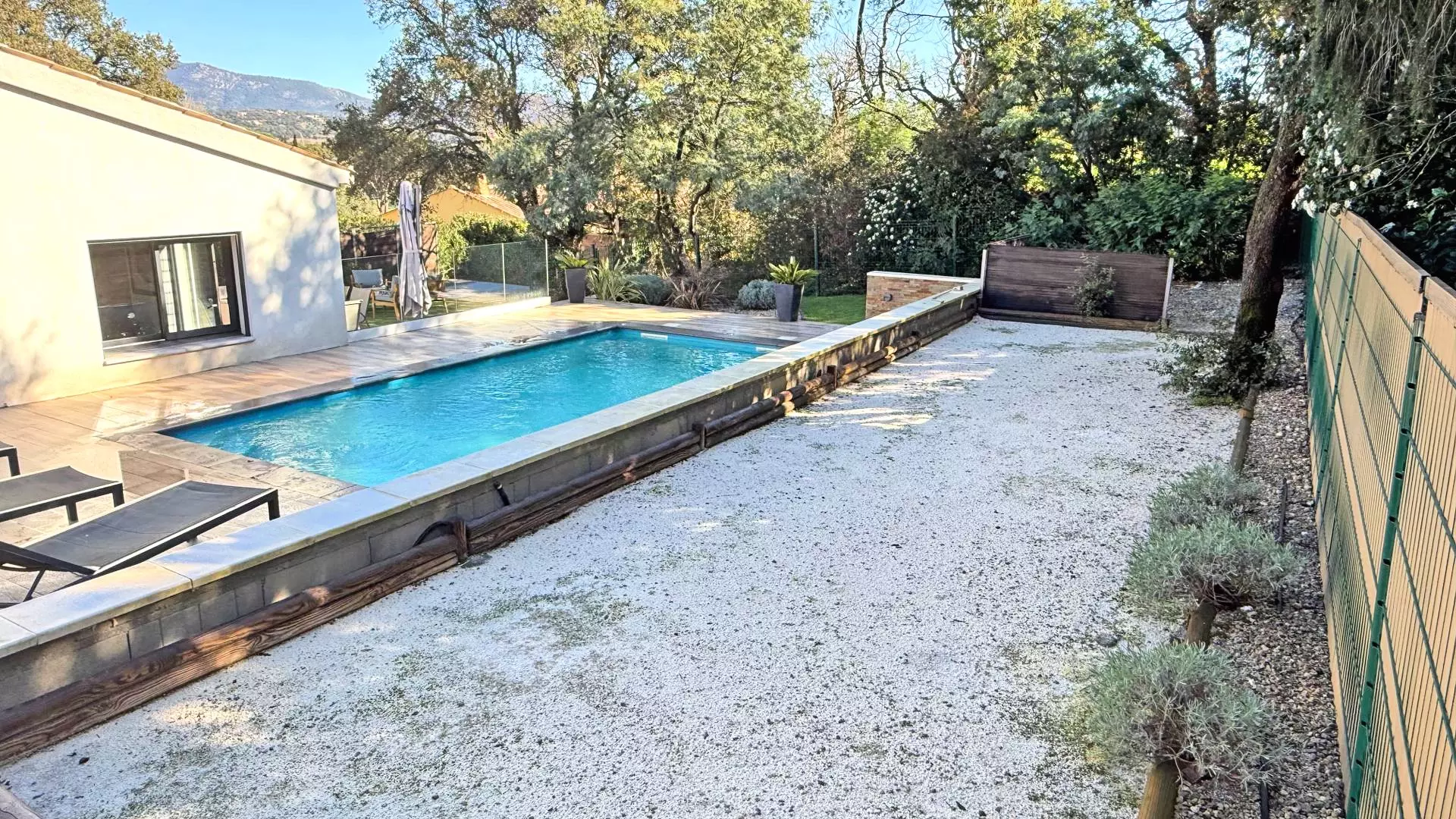 - Piscine privée 6.50x3m avec bains de soleil, bâche de sécurité
