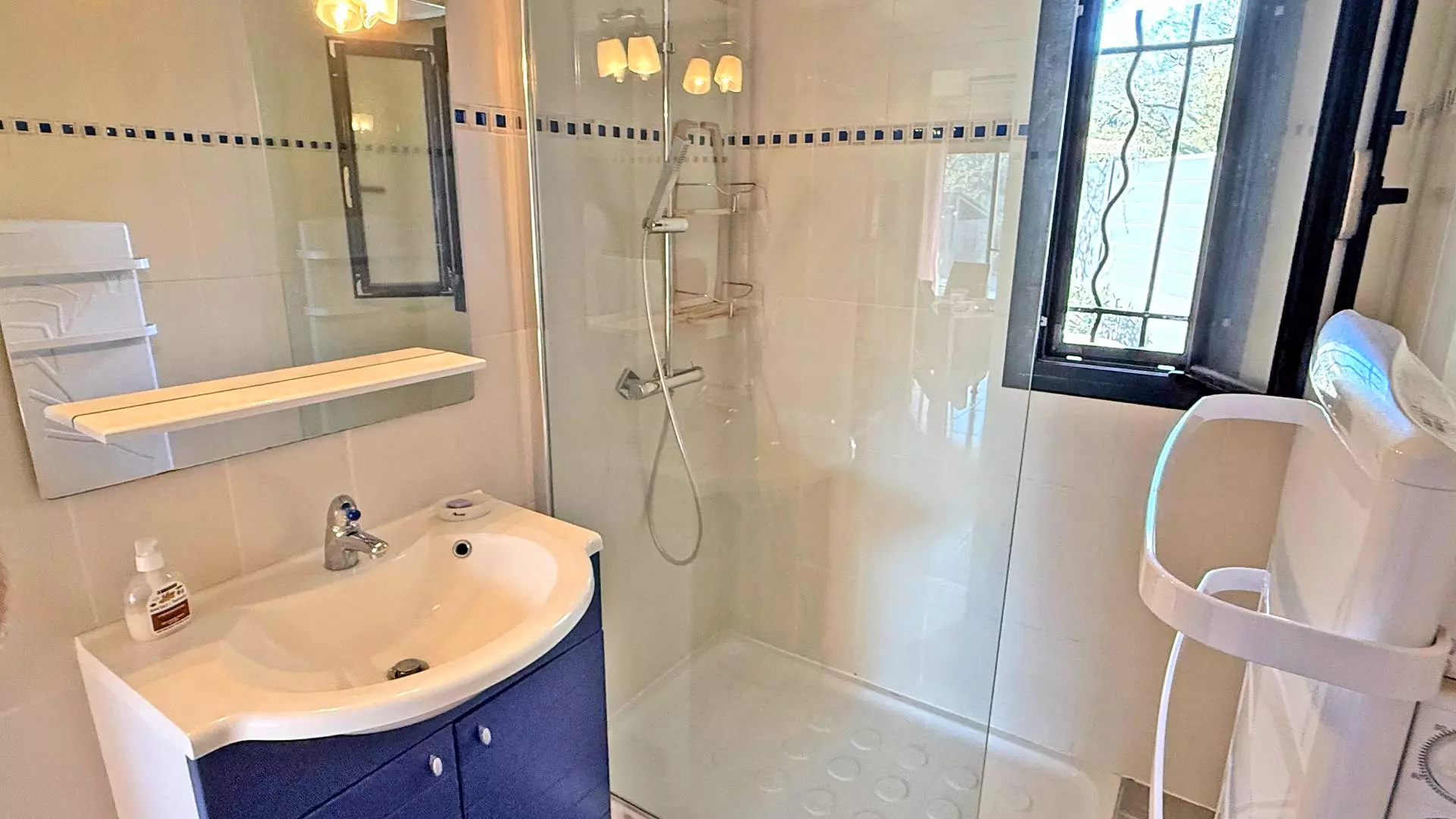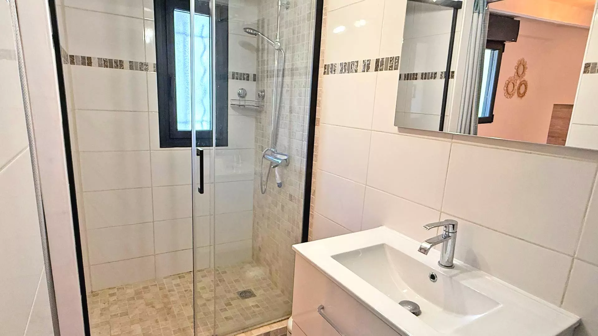 - Salle d'eau avec douche, meuble vasque et WC