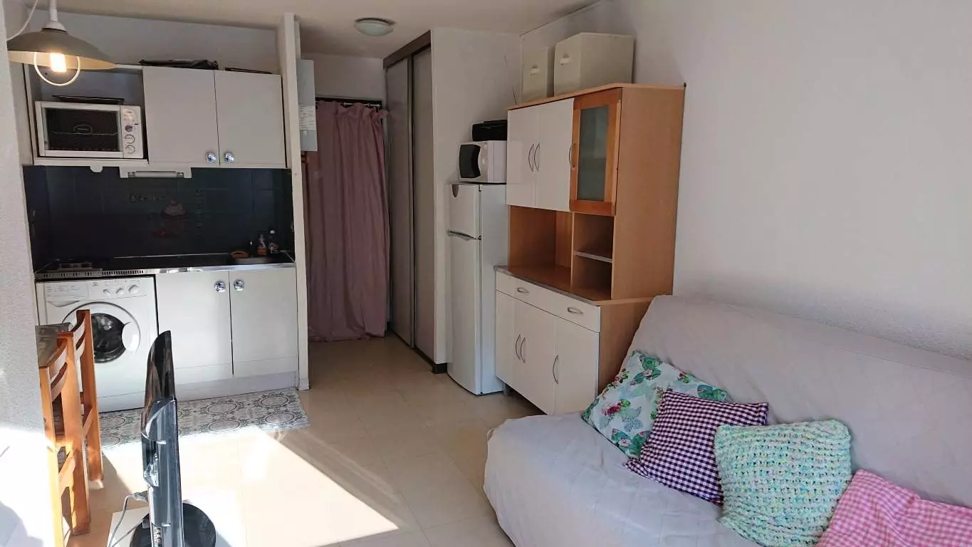 - 1 salon séjour avec coin nuit lit superposé et canapé convertible