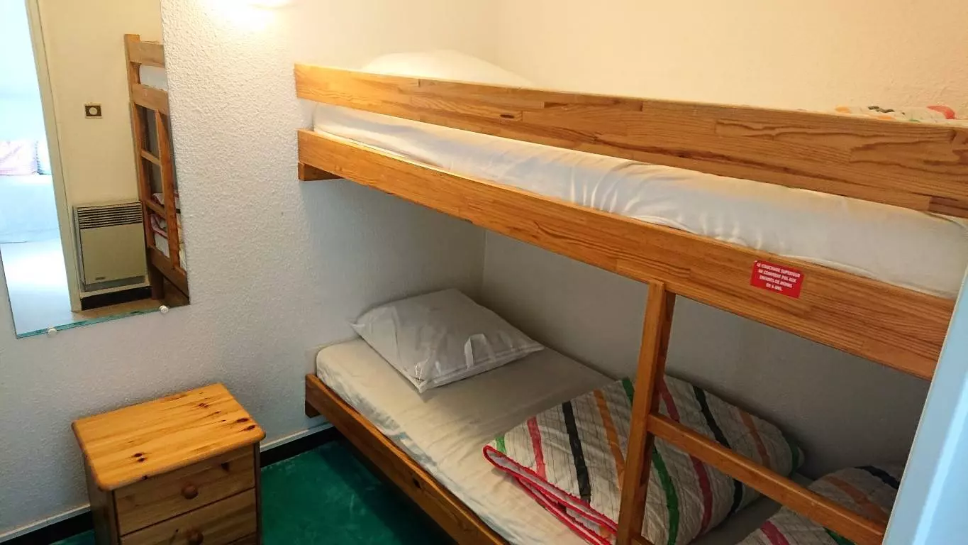 - 1 salon séjour avec canapé lit gigogne convertible et égalemment un coin nuit avec 2 lits superposés
