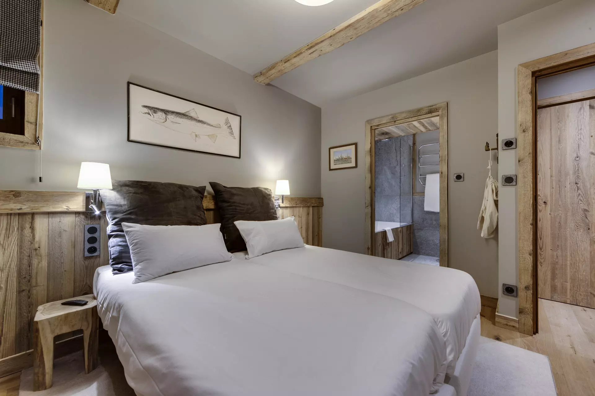 - Chambre avec 1 lit double séparable et 1 lit simple en suite avec salle de bain