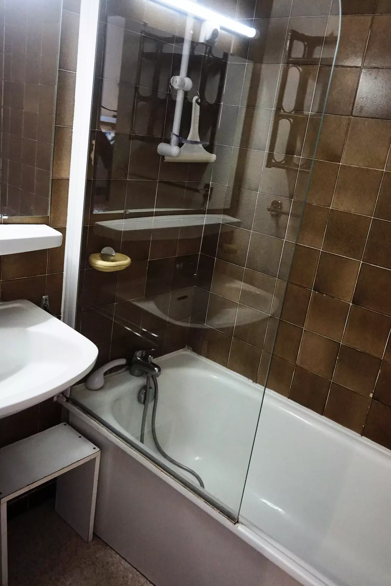 Salle de bains : bac à douche, WC.
