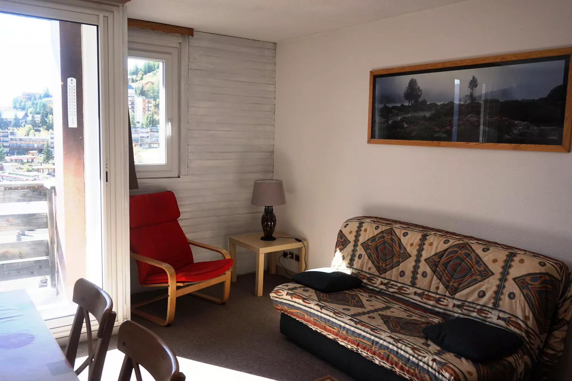 Séjour : 1clic-clac 2 places. 1 lit superposé rabattable. TV.
