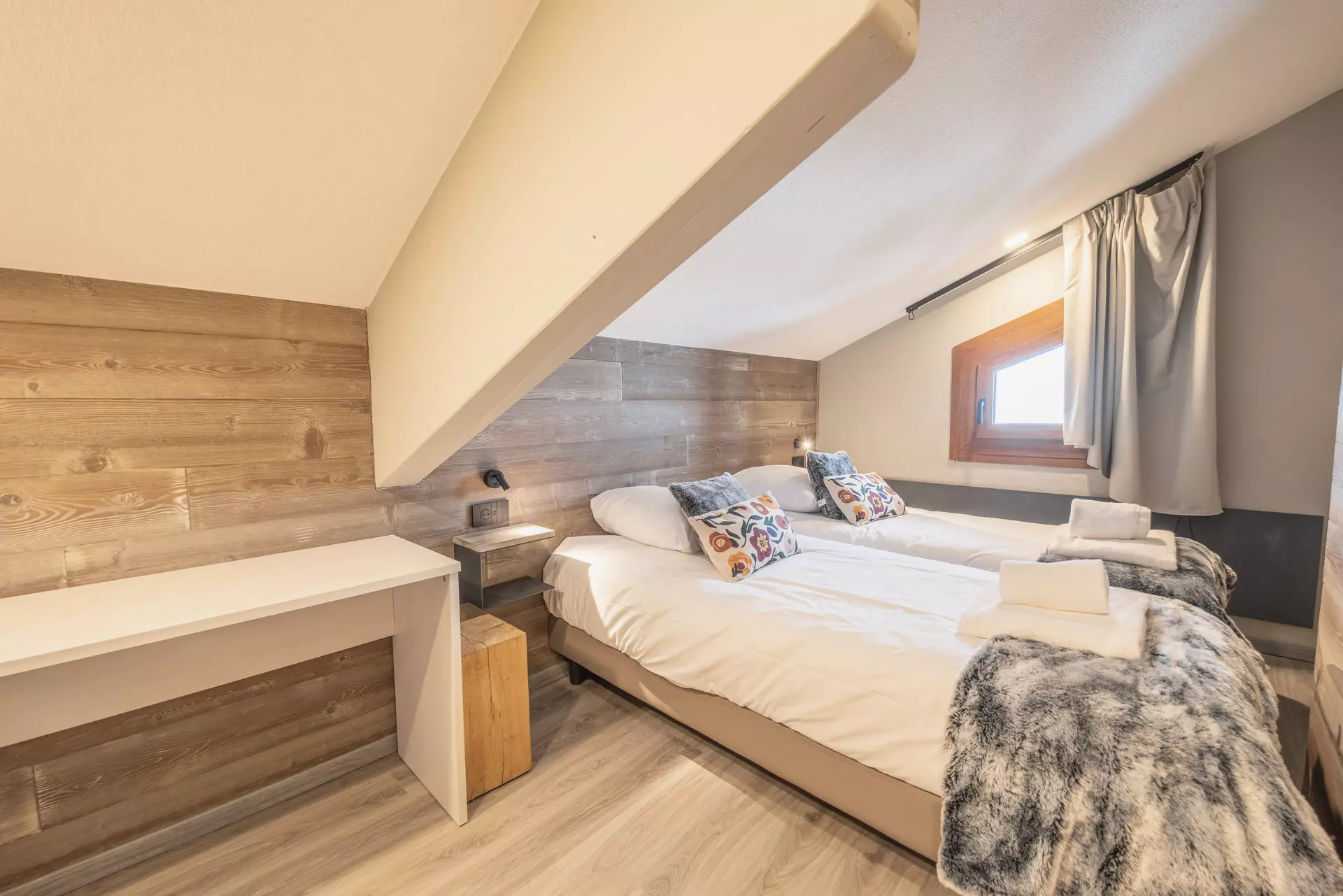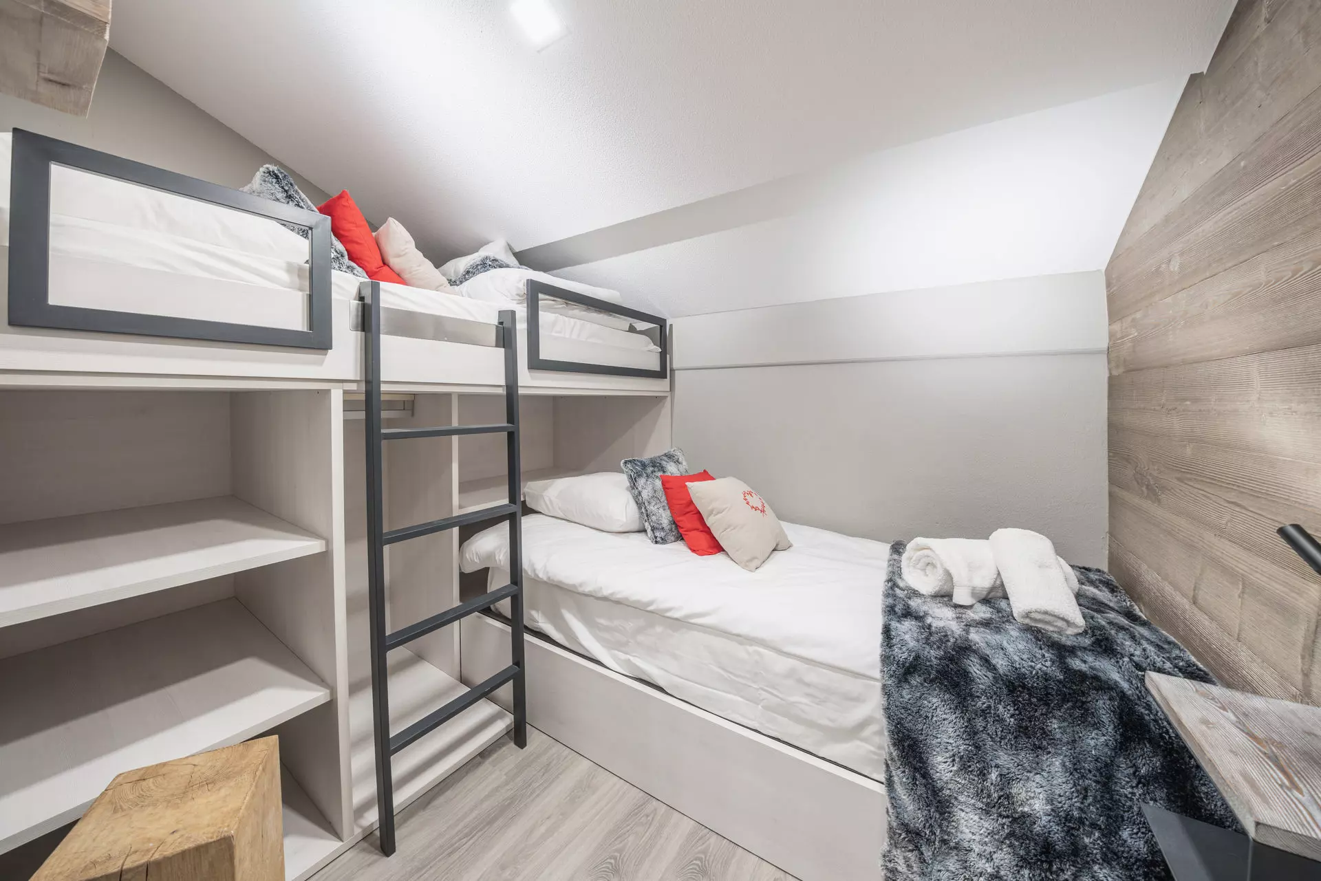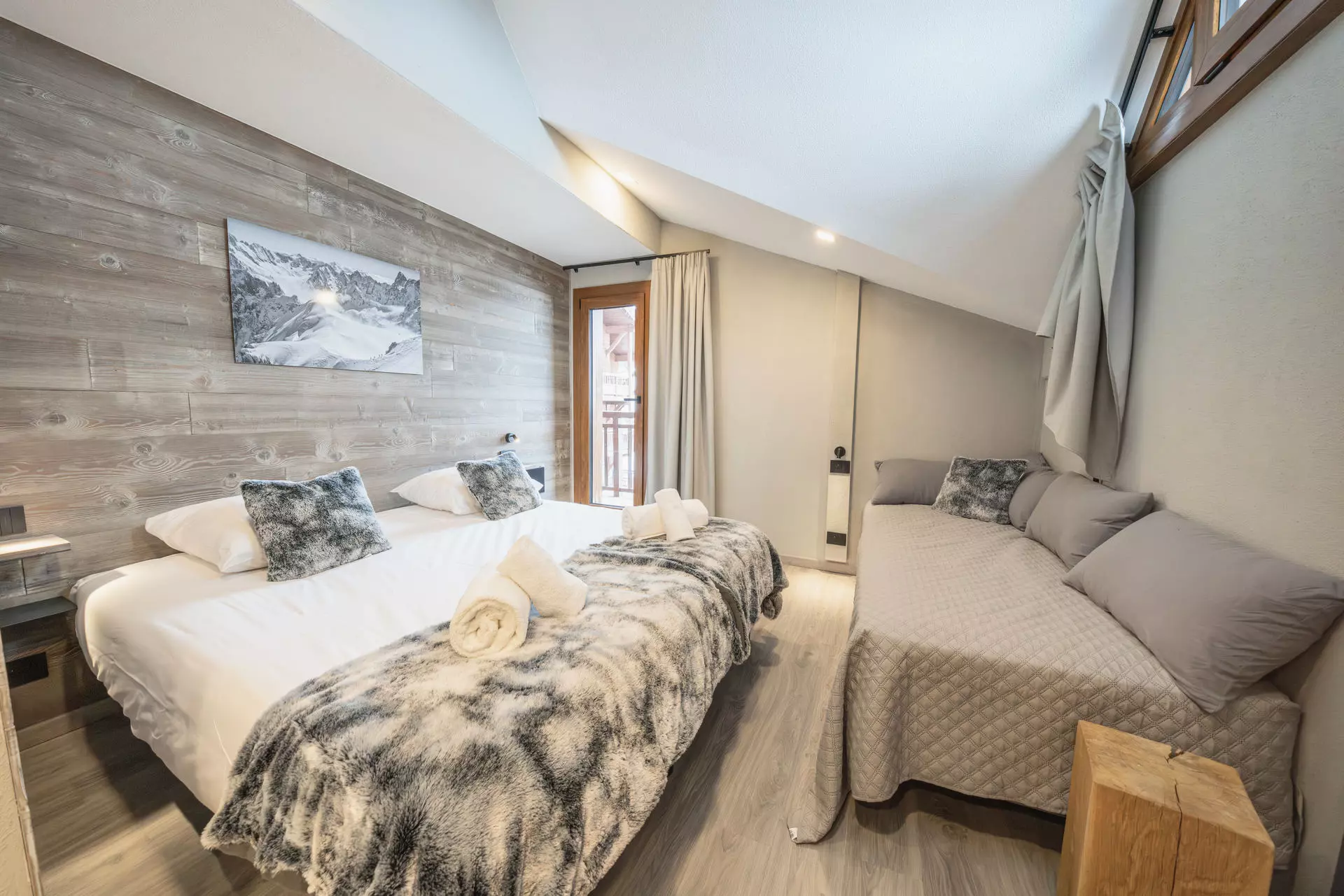 Appartement de 62m² en duplex situé dans la résidence Rosael, quartier Balcon. Il dispose de 3 chambres doubles et 2 salles de bain. Un espace espace wellness avec piscine et sauna sont accessibles aux clients de la résidence.