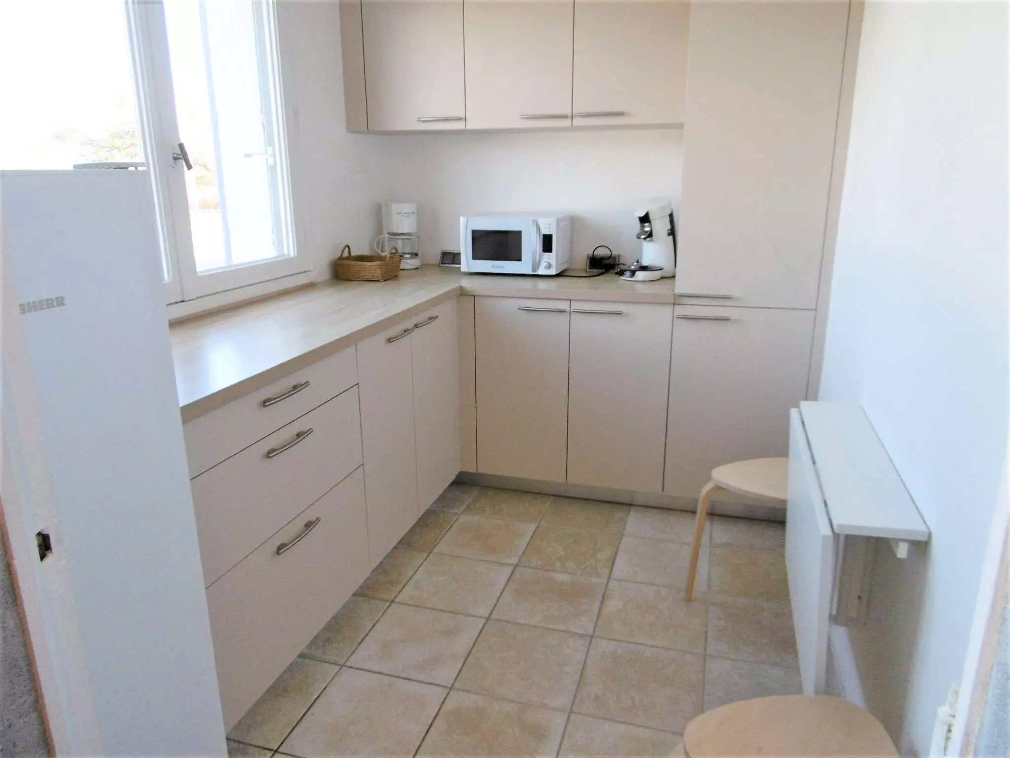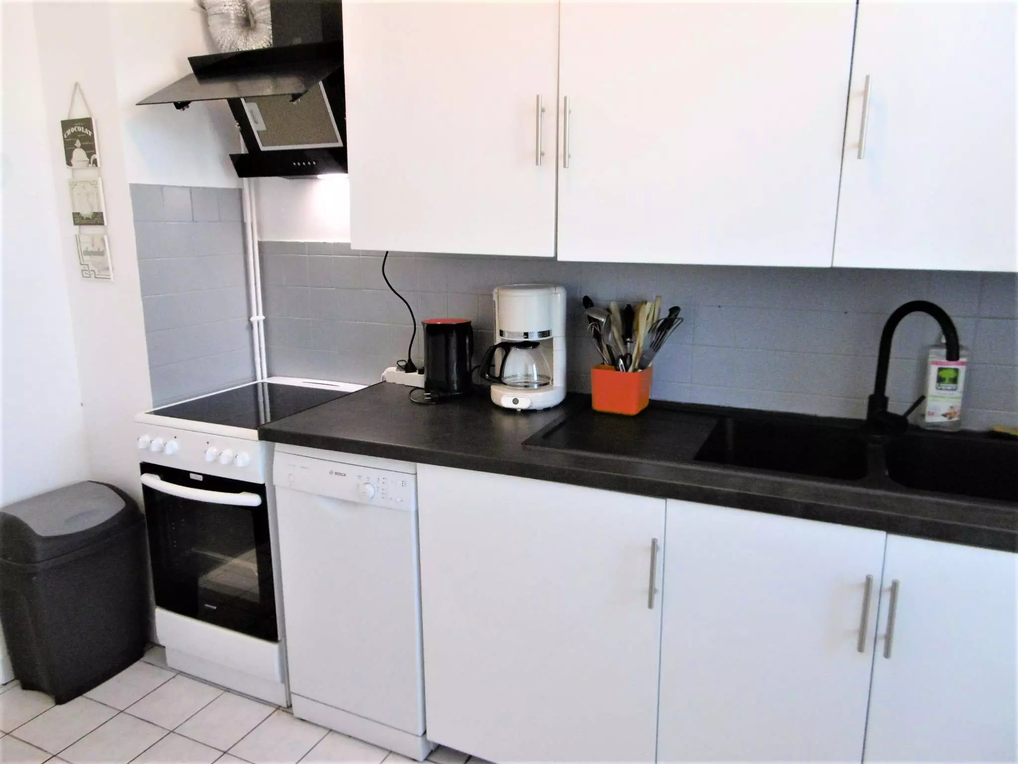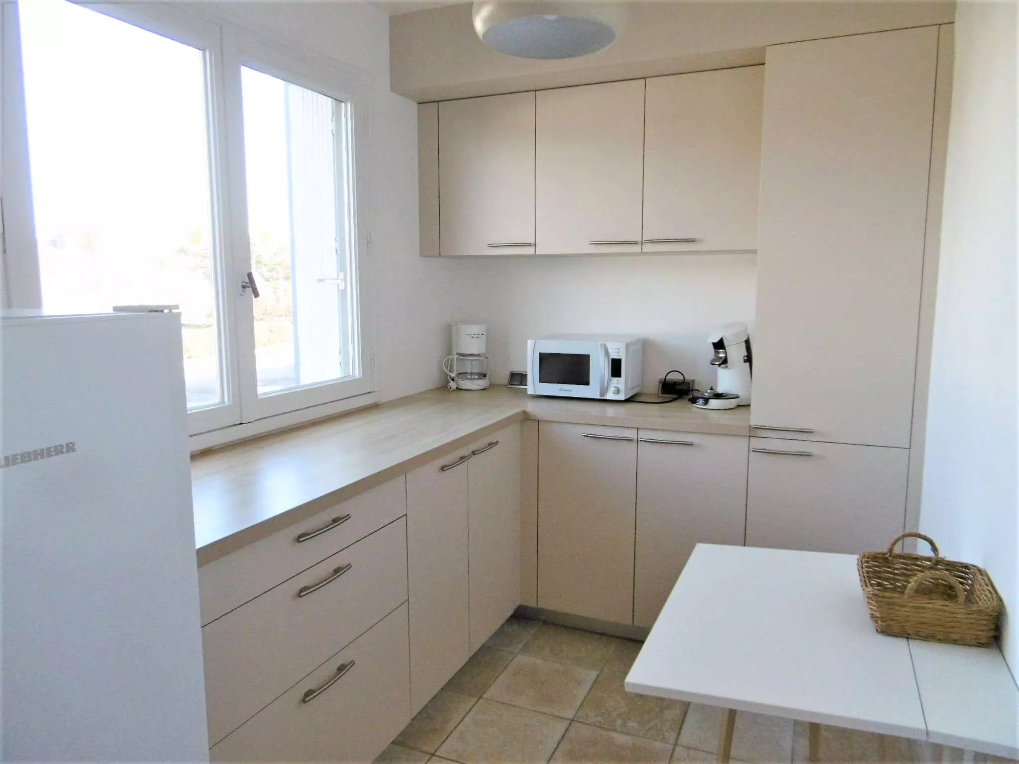 Equipement : réfrigérateur , four, micro-ondes, plaques vitrocéramiques, lave-vaisselle, lave-linge, cafetière, grille-pain, TV.