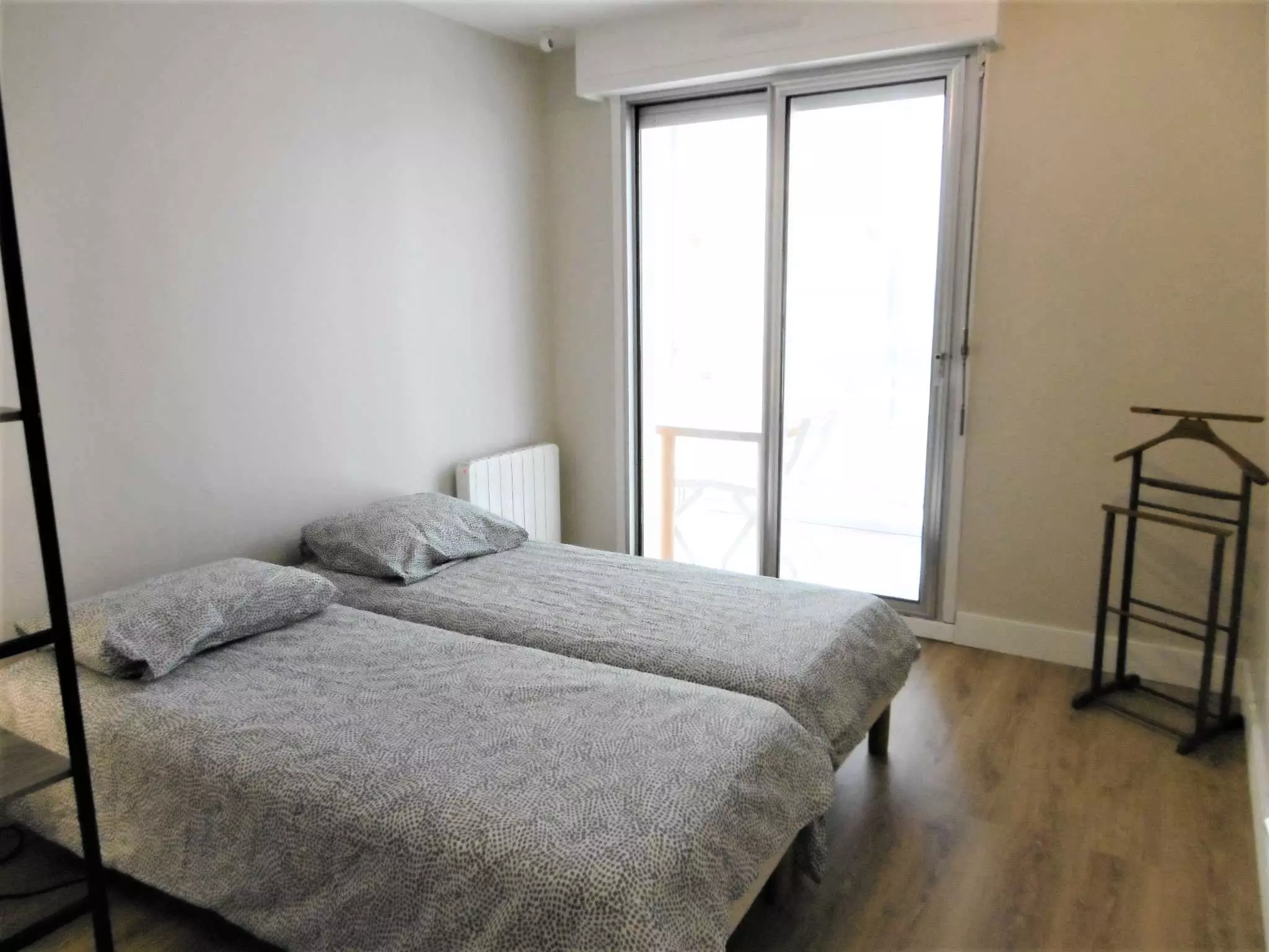 - Chambre 2 : 2 lits 80 (possibilité lit double), penderie - baie vitrée avec accès sur le balcon vue sur le jardin.